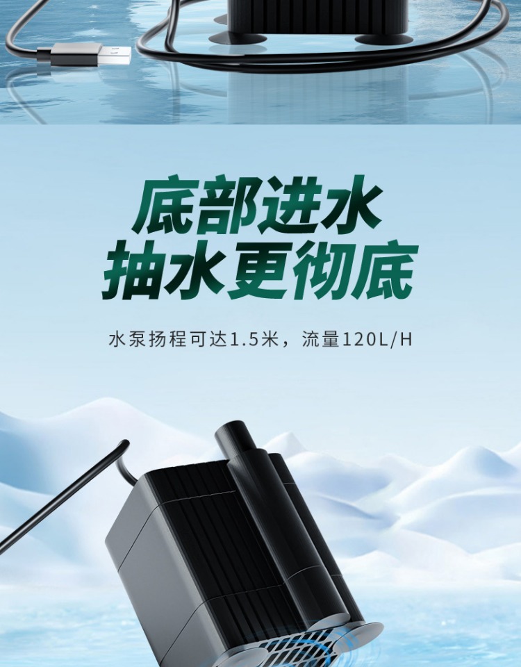 USB 작은 물 펌프 가정용 조용한 미니 미니 잠수정 펌프 바위 분수 순환 부스터 펌프