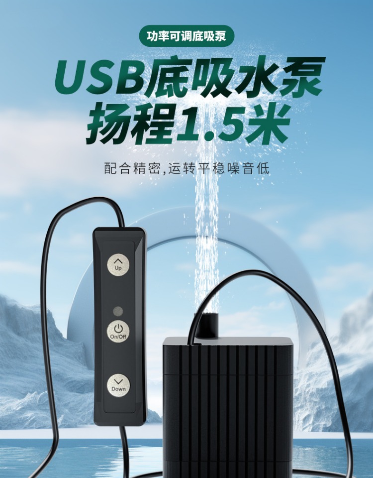 • 조정 가능한 USB 하단 흡입 펌프 + 수도관 1m + 엘보 (호환 가능)