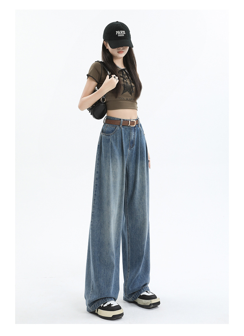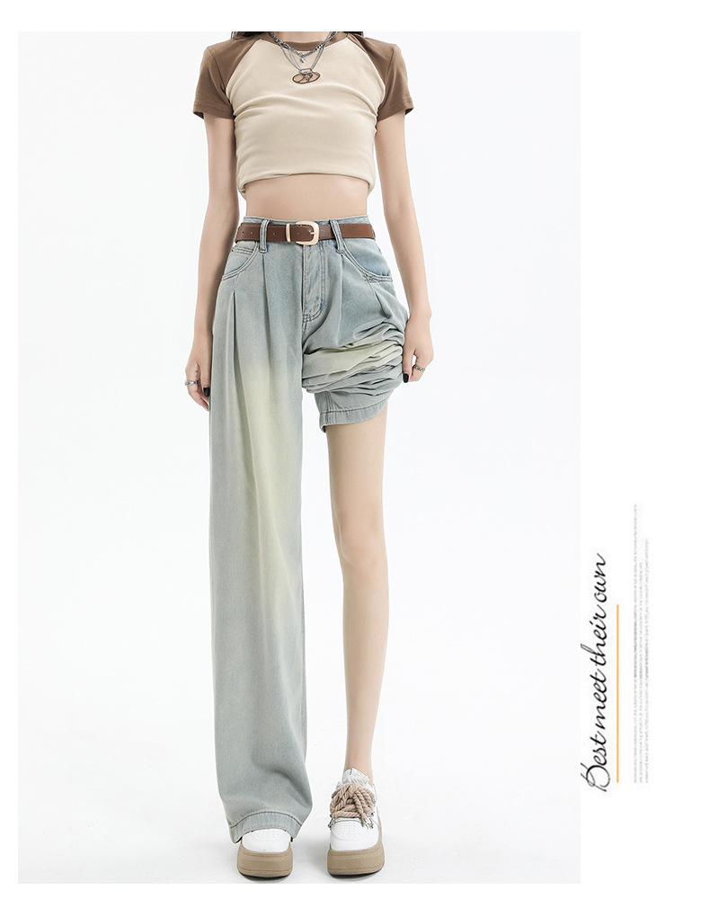 밝은 색 넓은 다리 청바지 여성의 2024 여름 새로운 높은 허리 느슨한 배 그림 바지 작은 직선 바지스토어 가기