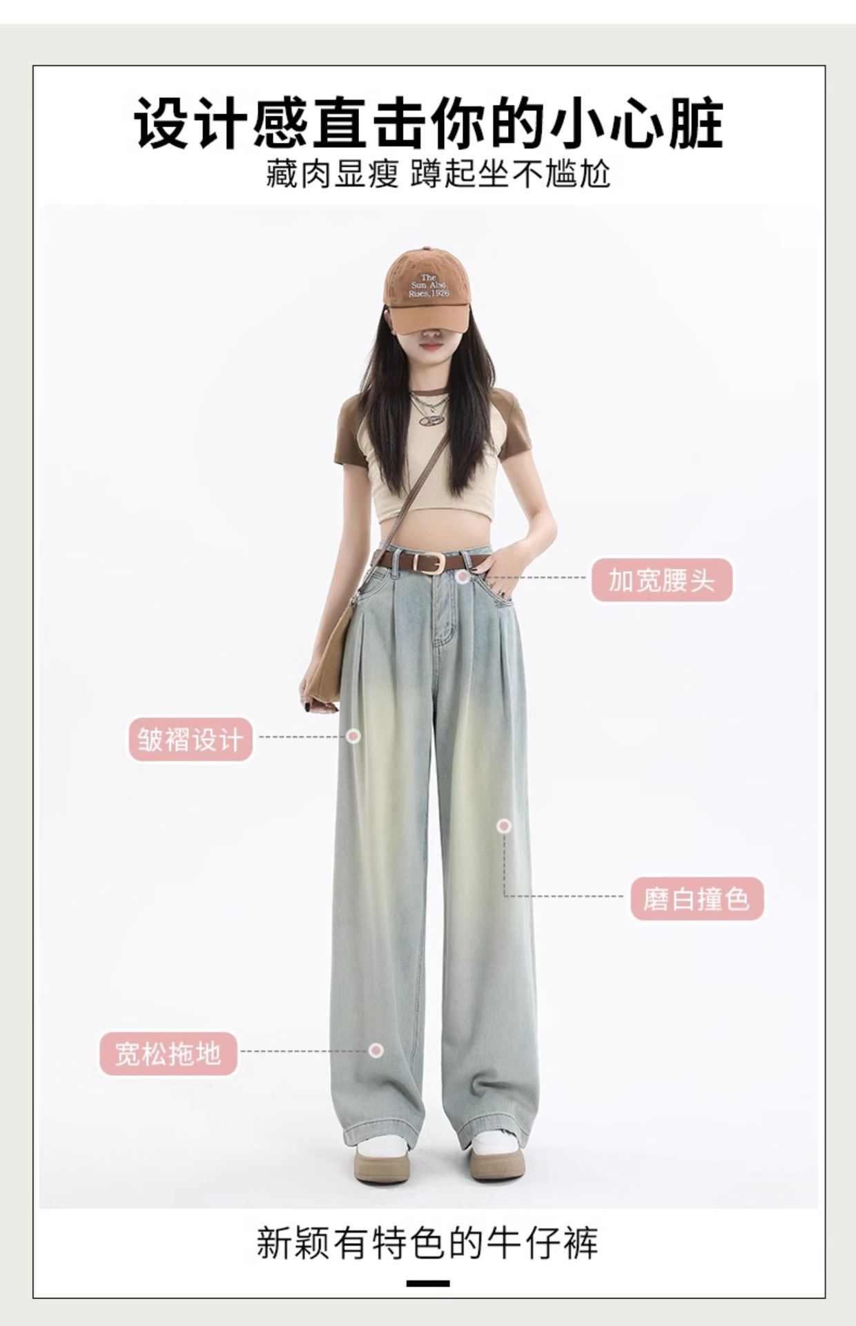 밝은 색 넓은 다리 청바지 여성의 2024 여름 새로운 높은 허리 느슨한 배 그림 바지 작은 직선 바지