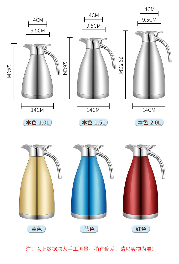 공장 가격 직접 판매 스테인레스 스틸 절연 주전자 더블 레이어 진공 온수 주전자 가정용 커피 포트 냉수 병 선물 국경 간스토어 가기