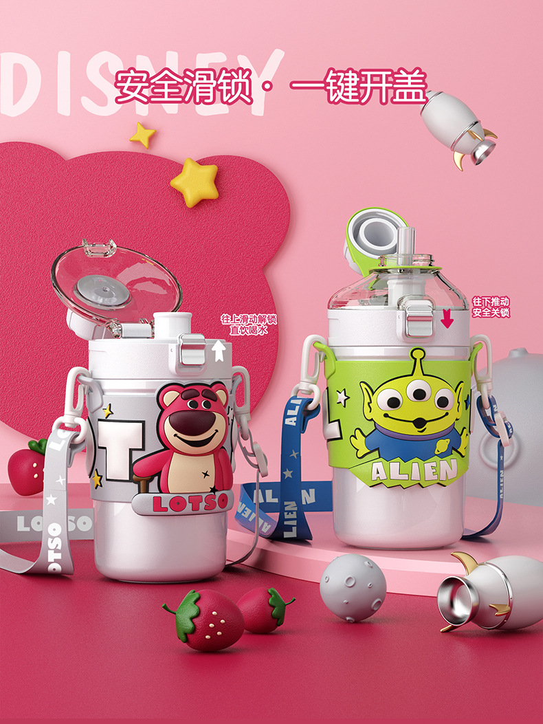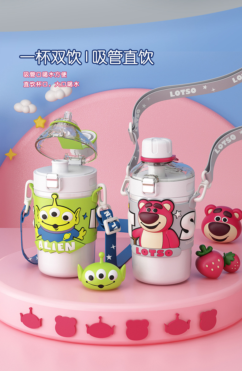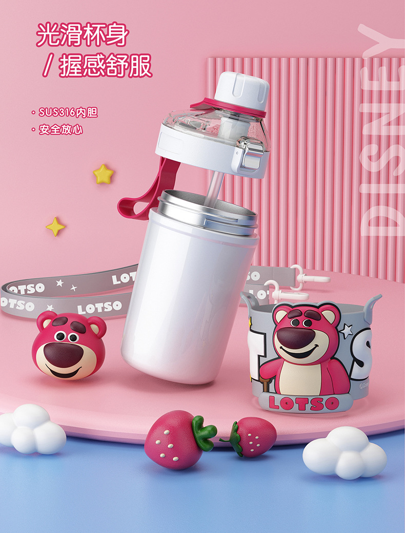 정품 IP 딸기 곰 진공 컵 만화 귀여운 Suqian 두 음료 컵 소년 소녀 어린이 대용량 밀짚 컵스토어 가기