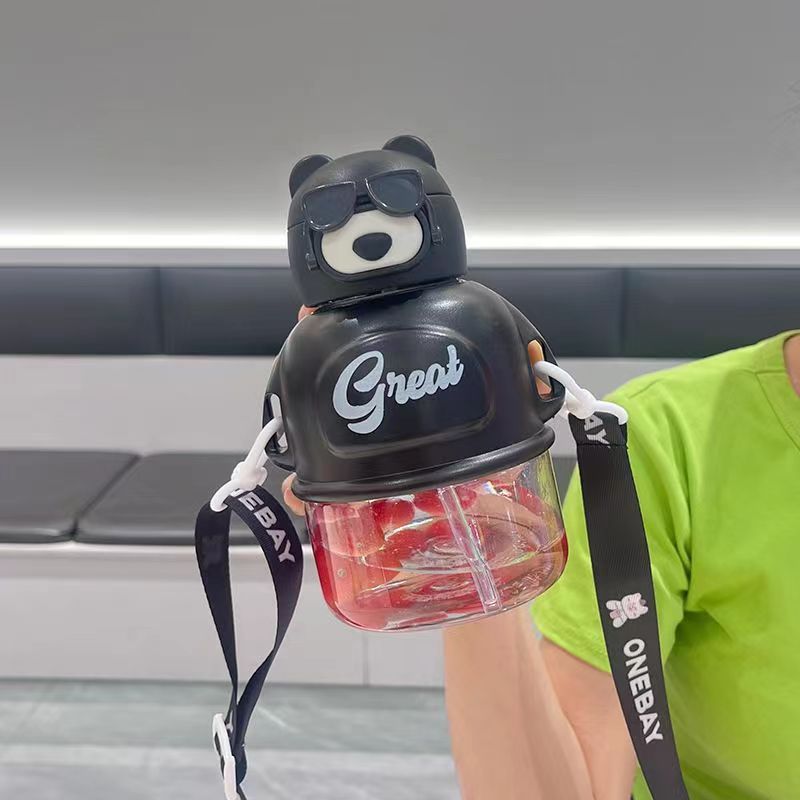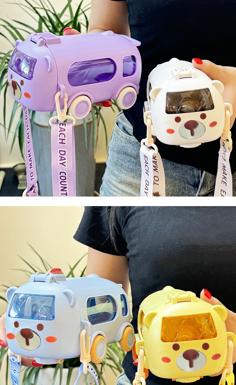 새로운 아기 버스 자동차 물 컵 높은 색상 가치 어린이 흡입 튜브 컵 야외 휴대용 뚜껑 대용량 물 컵