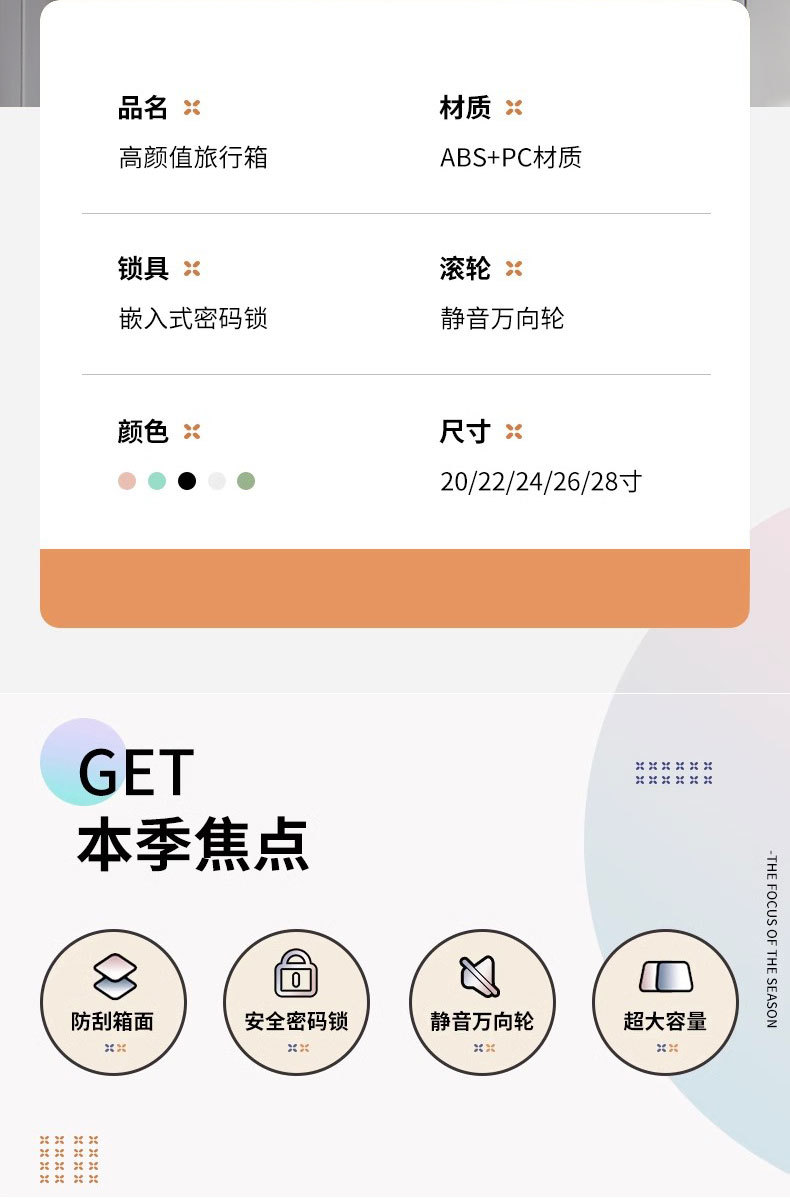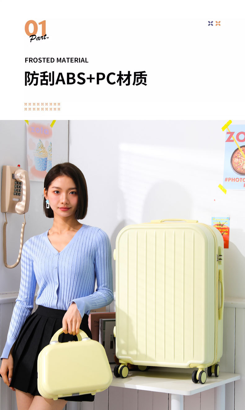 [엄선 공장] 여성용 여행가방, 심플하고 청순한 스타일, 20인치 학생용, 레버형, 비밀번호 잠금, 24인치 여행용, 기내용 가죽 캐리어 26inch