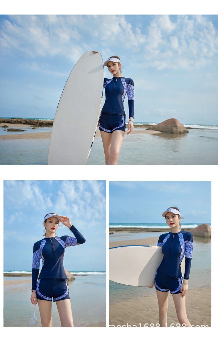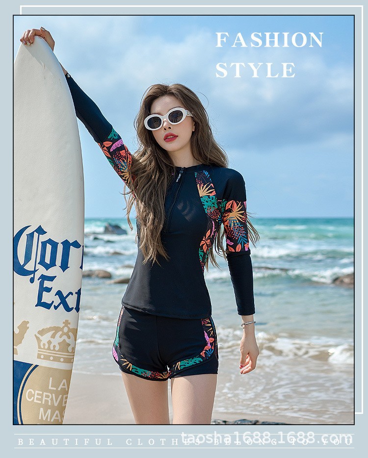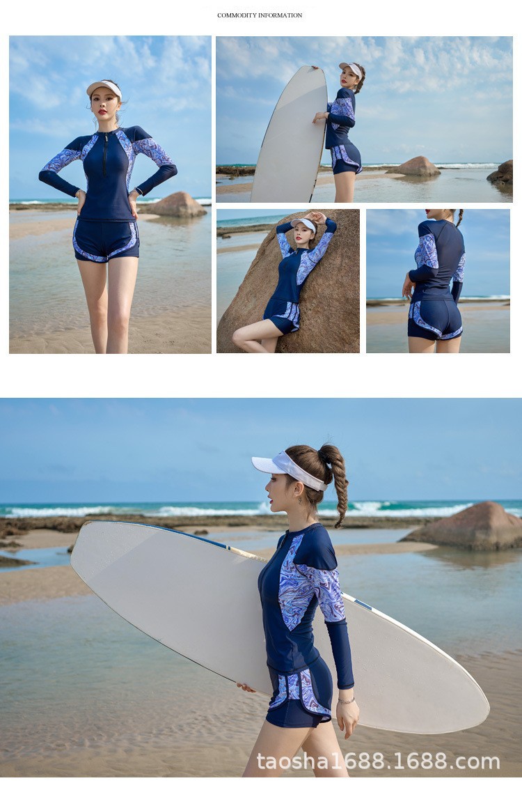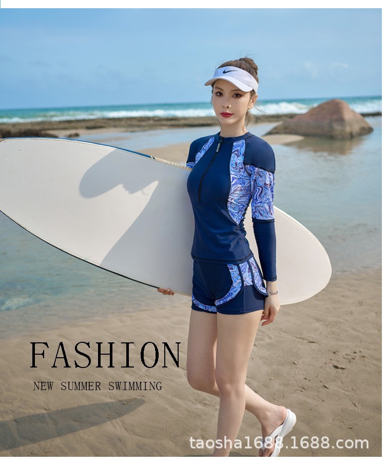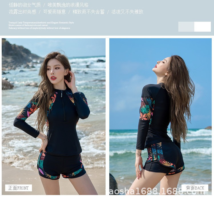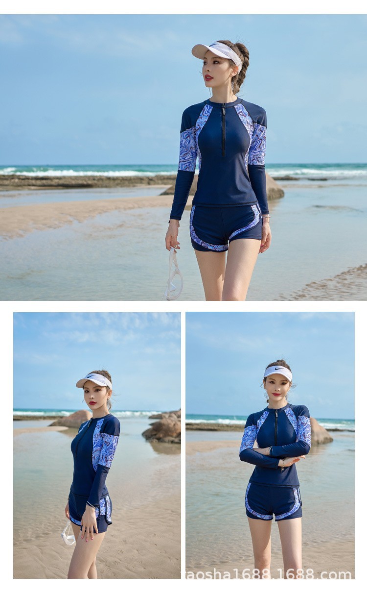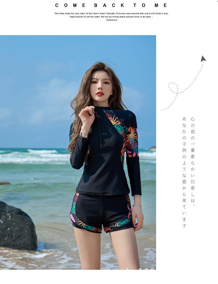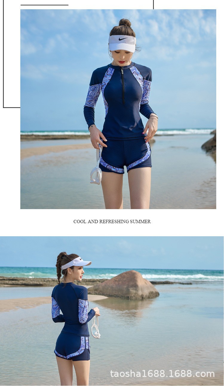 새로운 긴 소매 플러스 사이즈 분할 섹시한 수영복 여성 배꼽 슬리밍 작은 가슴이 보수적 인 복서 온천 수영복을 밀어