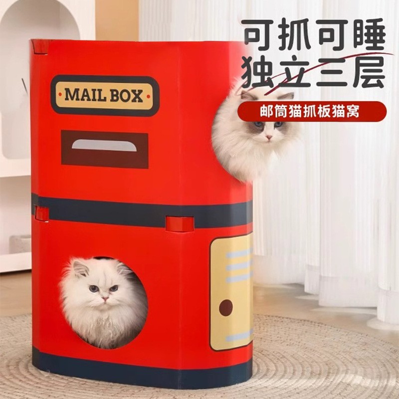 【品名】:HOOPET (邮筒抓板猫窝/椭圆邮筒抓板猫窝)-(单层/双层)