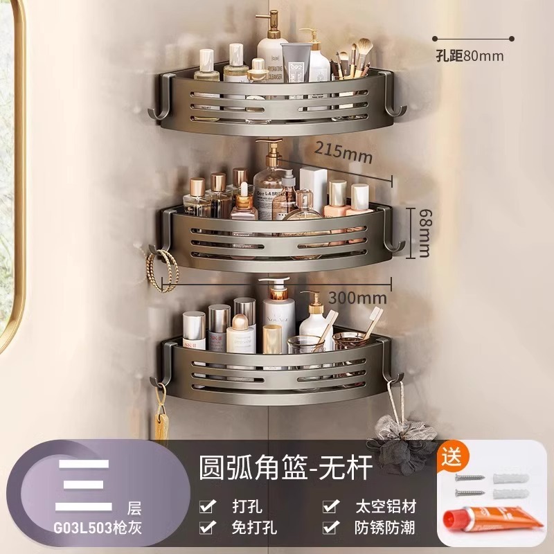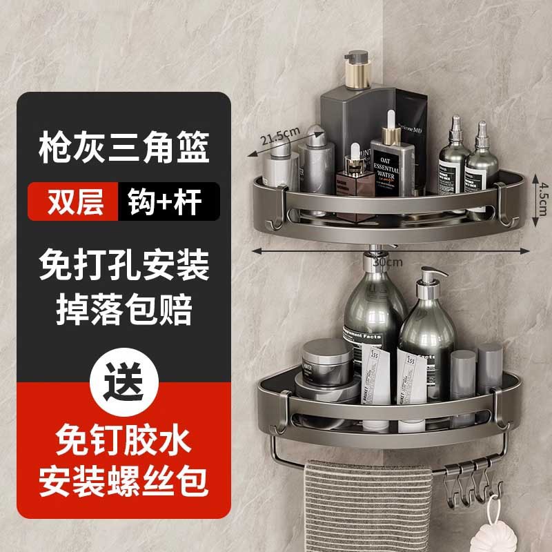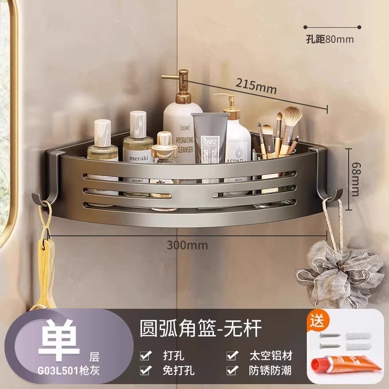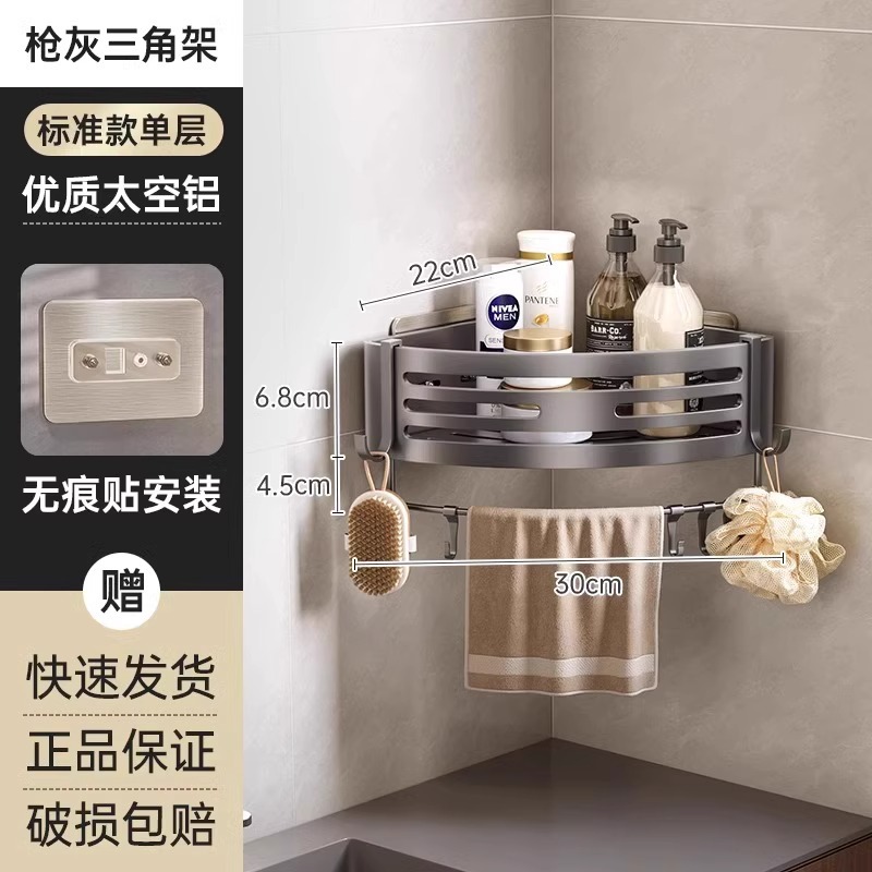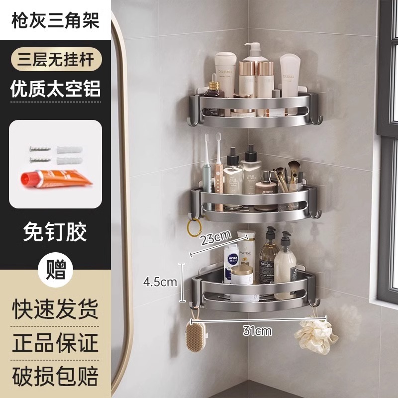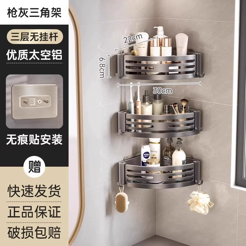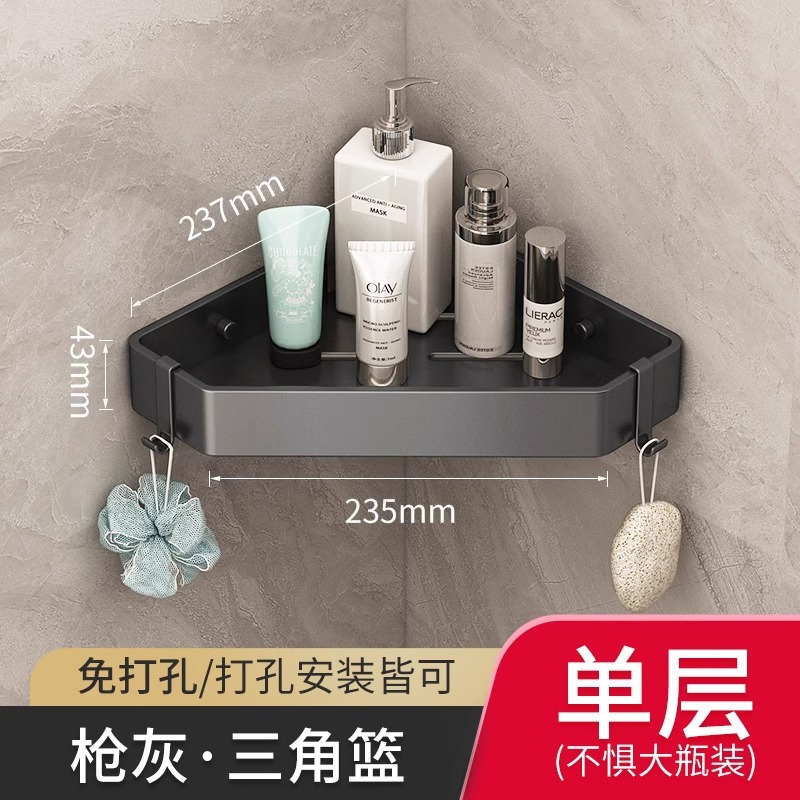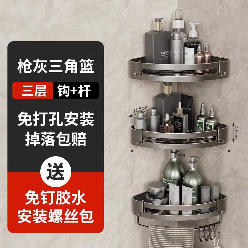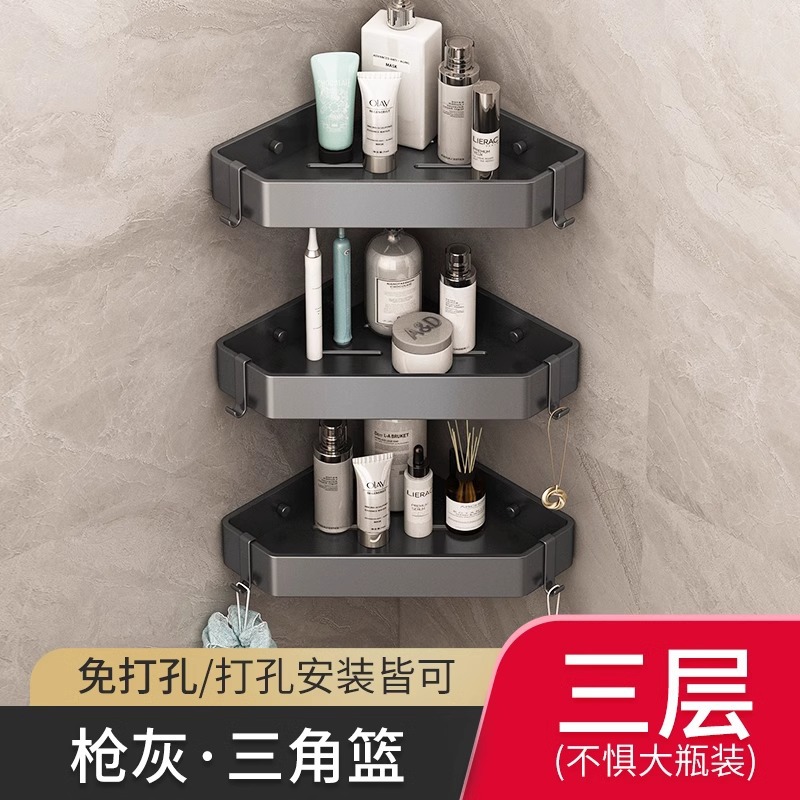 총 회색 공간 알루미늄 욕실 삼각형 바구니 보관 랙 펀치 프리 욕실 벽걸이 화장실 보관 랙스토어 가기