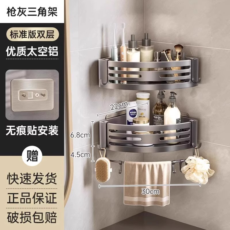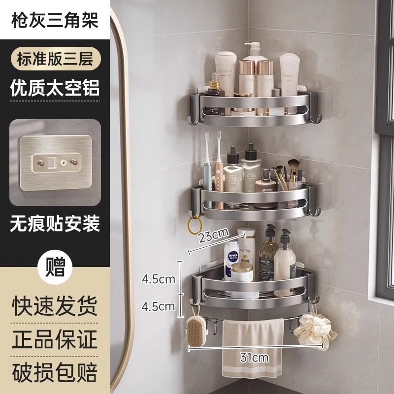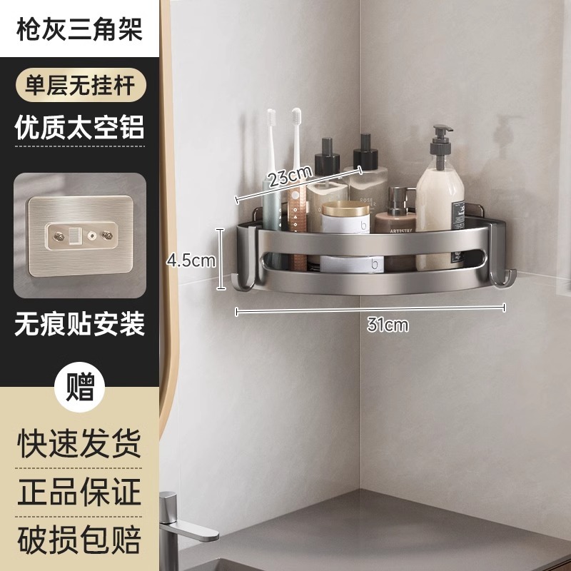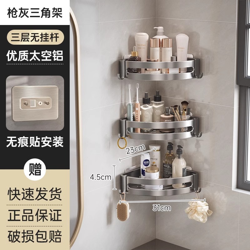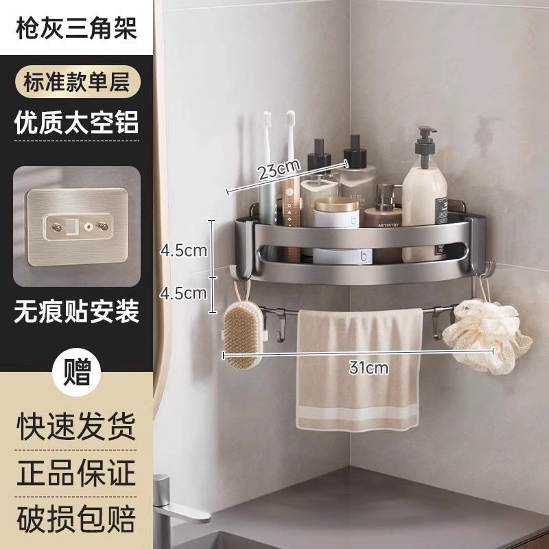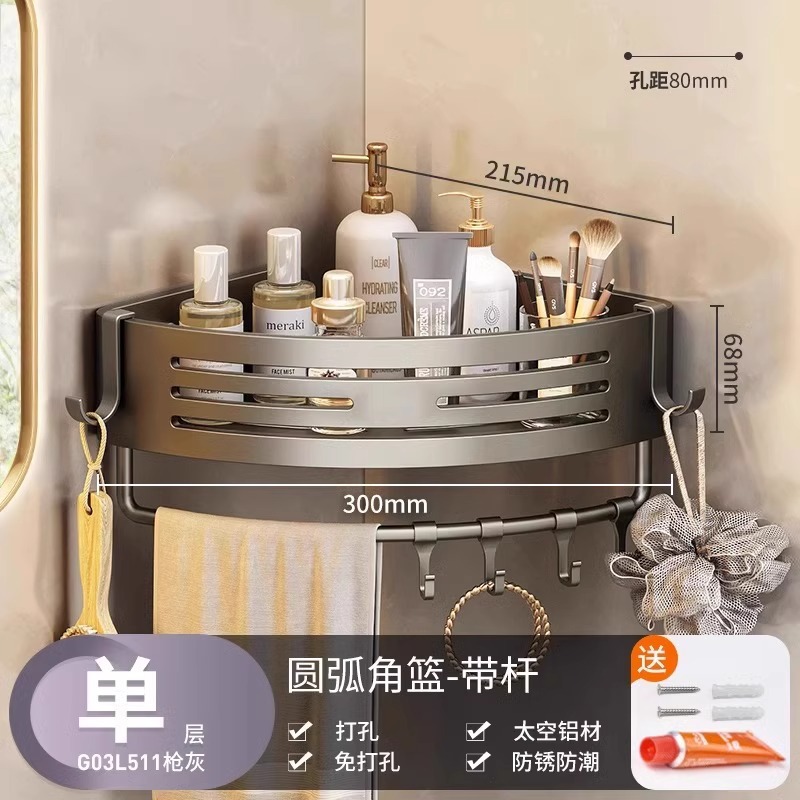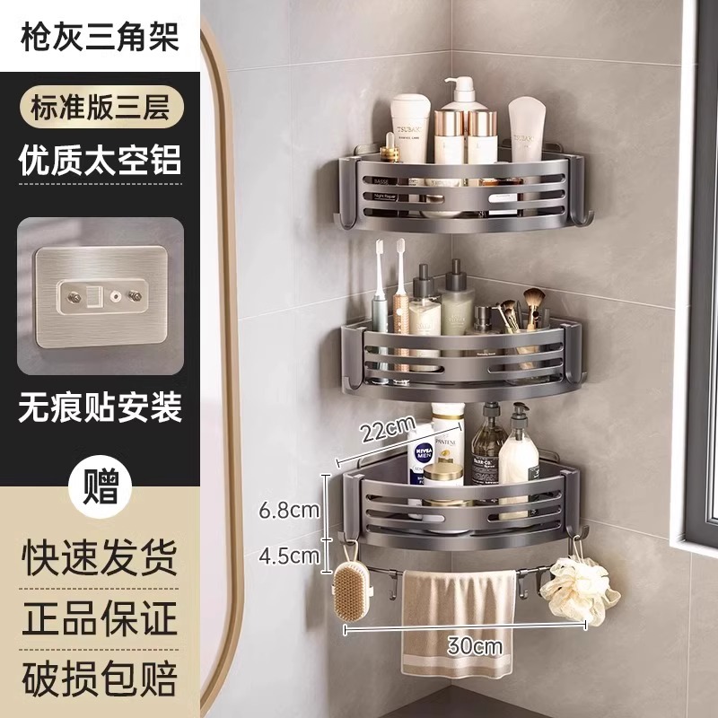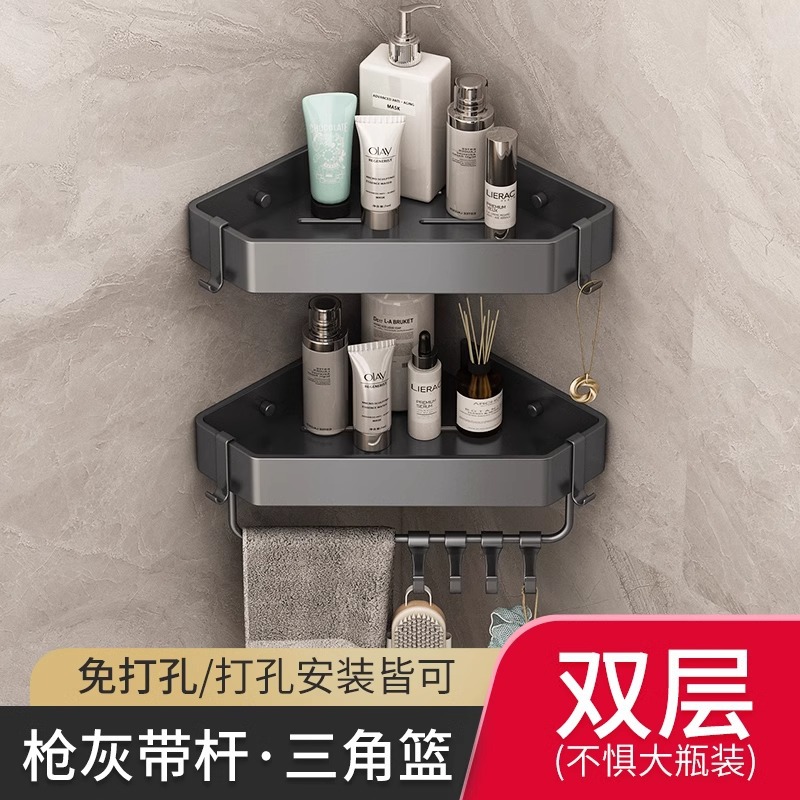 총 회색 공간 알루미늄 욕실 삼각형 바구니 보관 랙 펀치 프리 욕실 벽걸이 화장실 보관 랙스토어 가기
