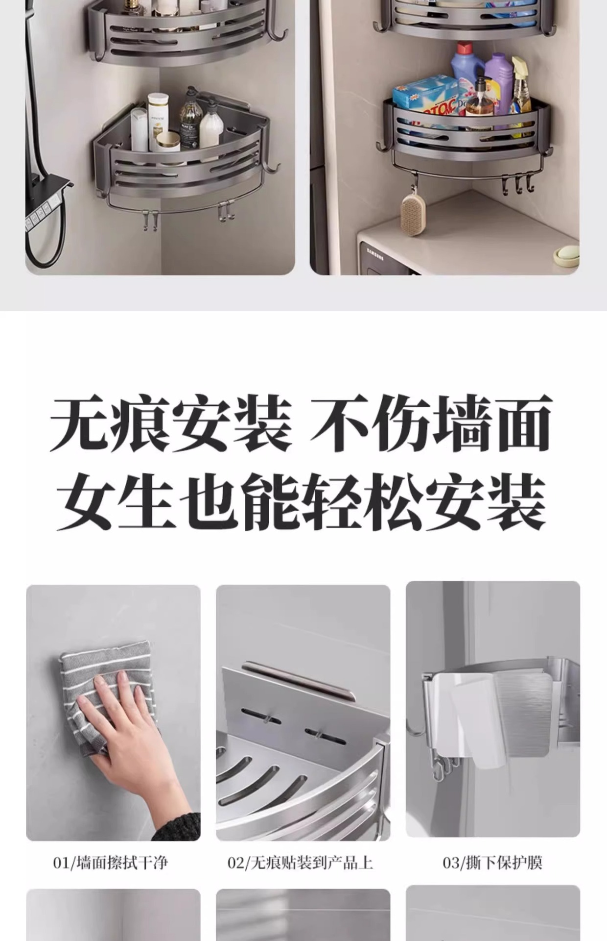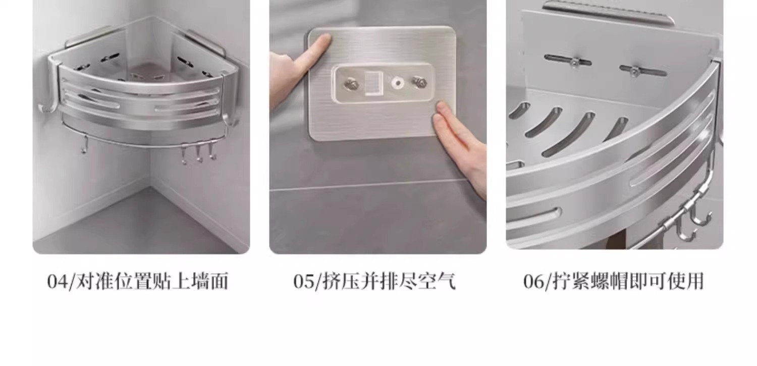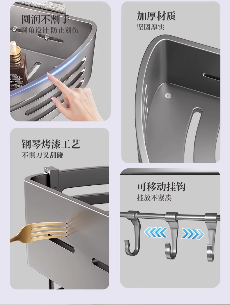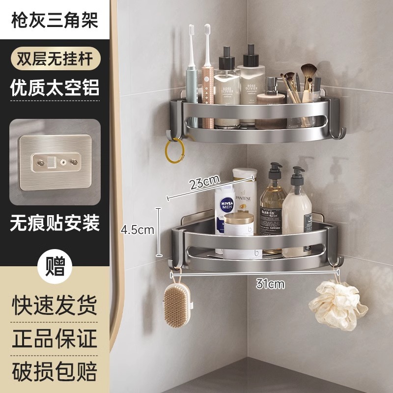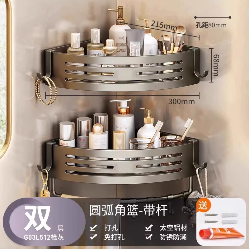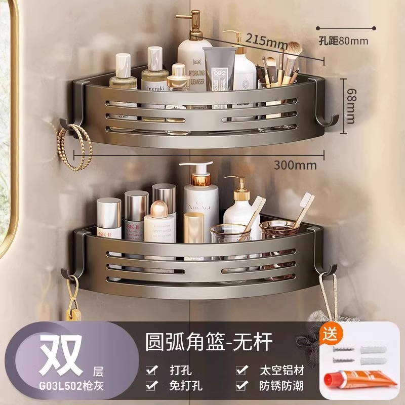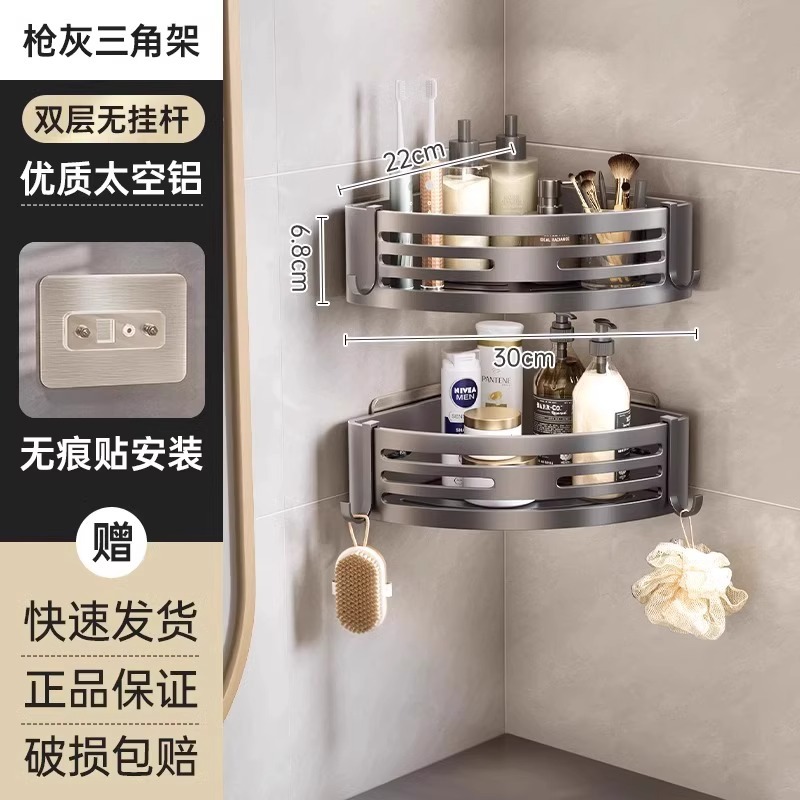 총 회색 공간 알루미늄 욕실 삼각형 바구니 보관 랙 펀치 프리 욕실 벽걸이 화장실 보관 랙스토어 가기
