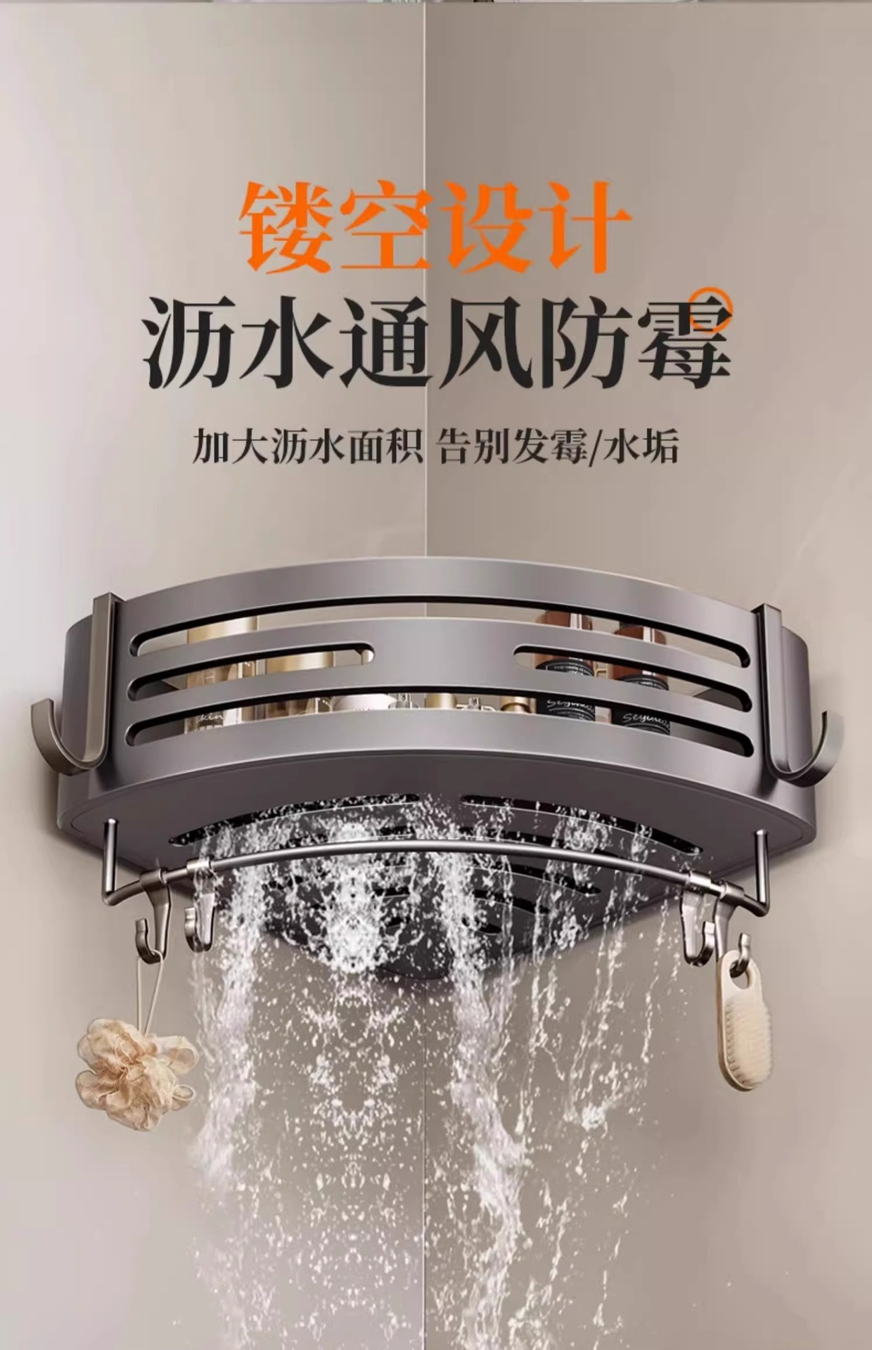 총 회색 공간 알루미늄 욕실 삼각형 바구니 보관 랙 펀치 프리 욕실 벽걸이 화장실 보관 랙
