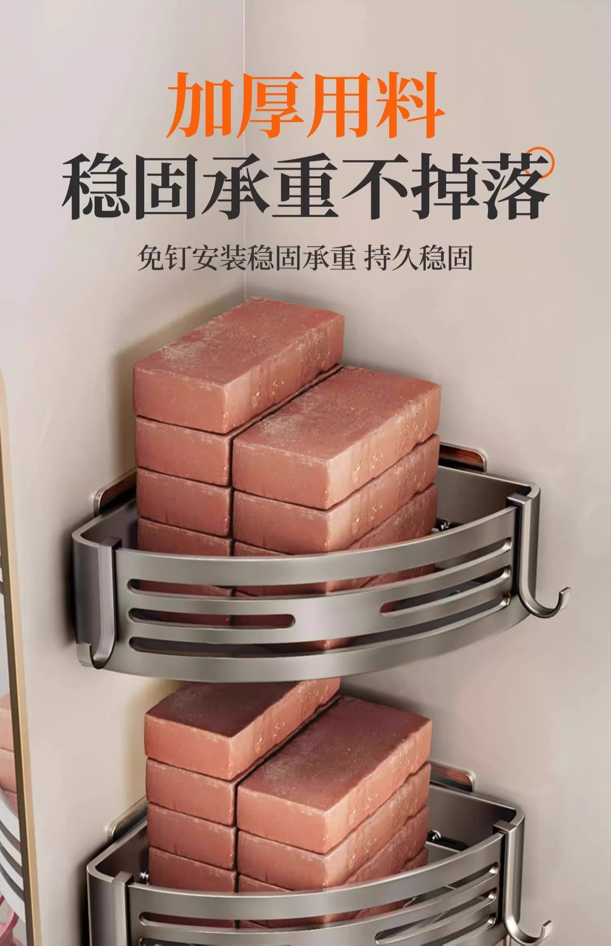 • 총 회색 더블 레이어-손톱이없는 접착제-후크가있는 아래로드 [6.8cm 강화 두꺼운 삼각형 바구니]]