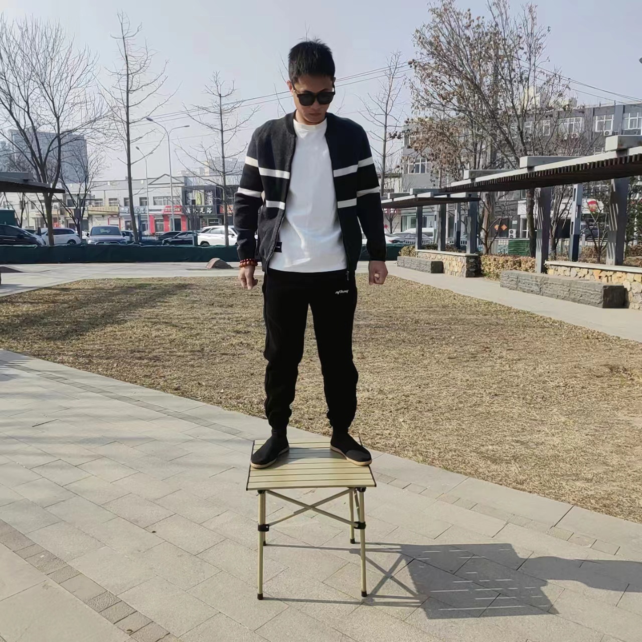 • 검은 접이식 사각형 테이블 + 보관 가방