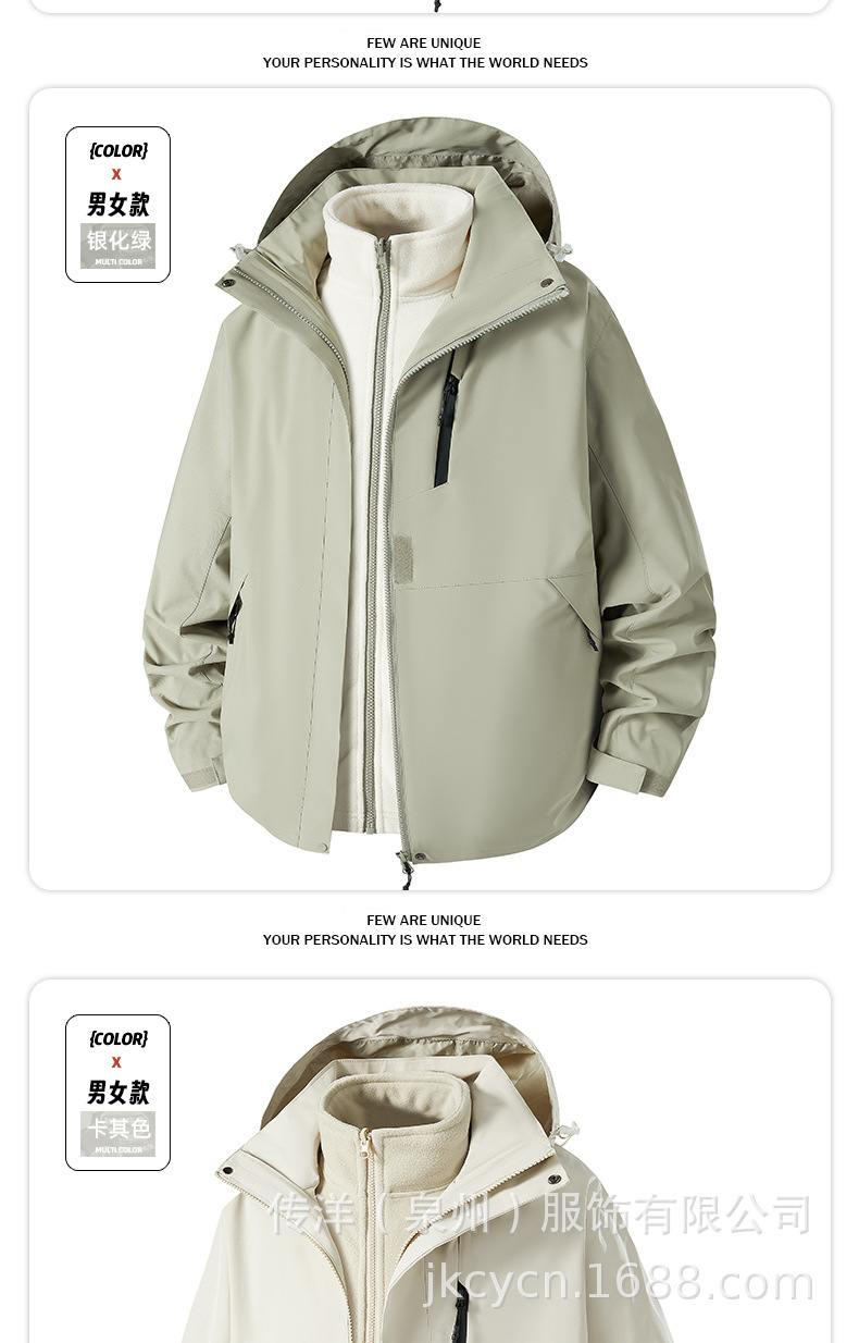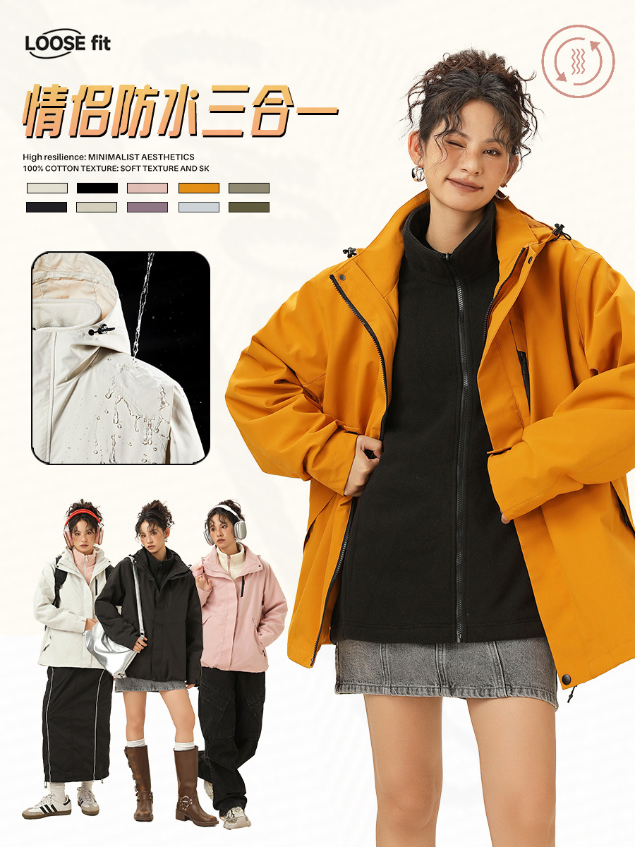 Jack Chuanyang 야외 마운틴 재킷 트렌디 브랜드 야외 작업복 루즈 커플 재킷 3-in-One 분리형