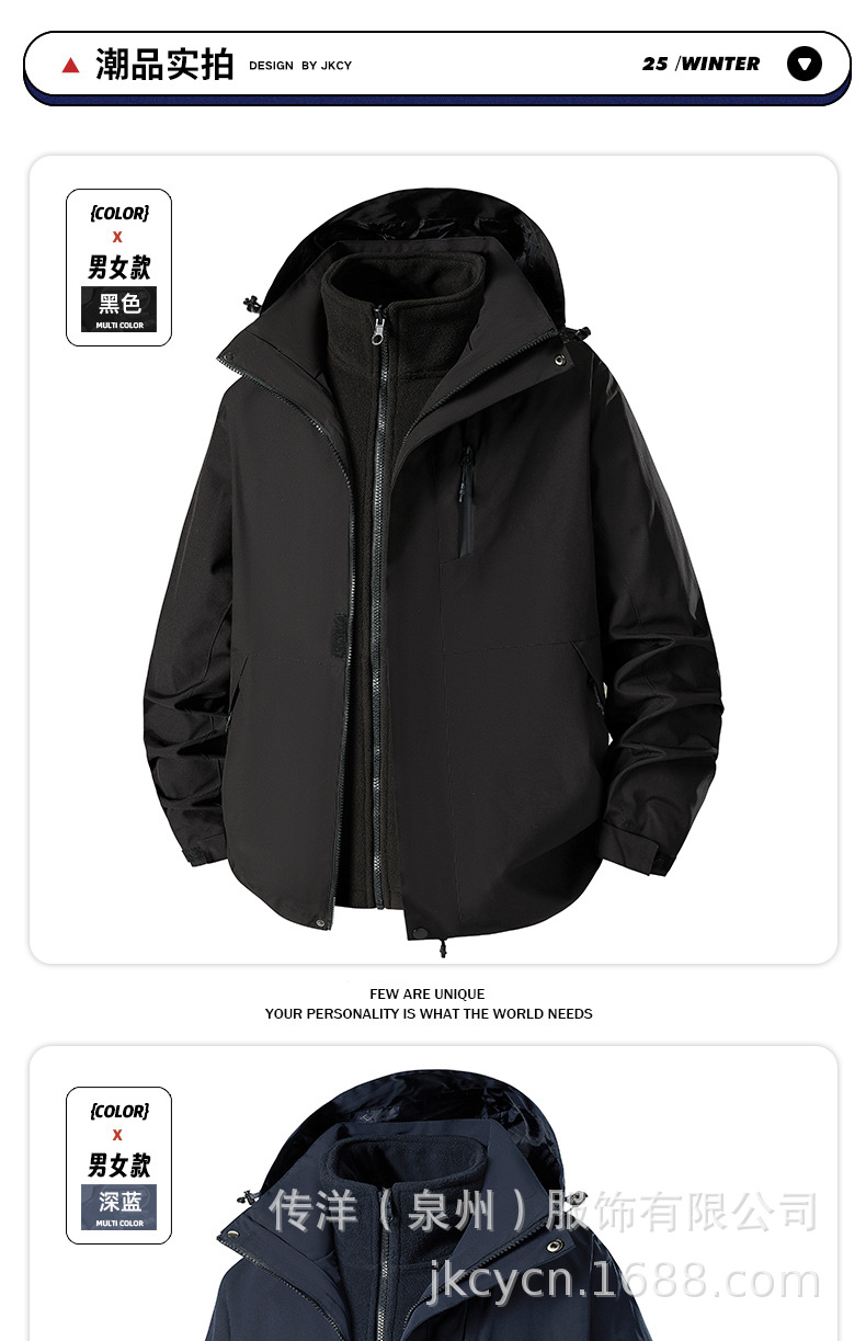 Jack Chuanyang 야외 마운틴 재킷 트렌디 브랜드 야외 작업복 루즈 커플 재킷 3-in-One 분리형스토어 가기