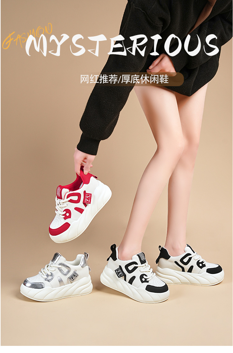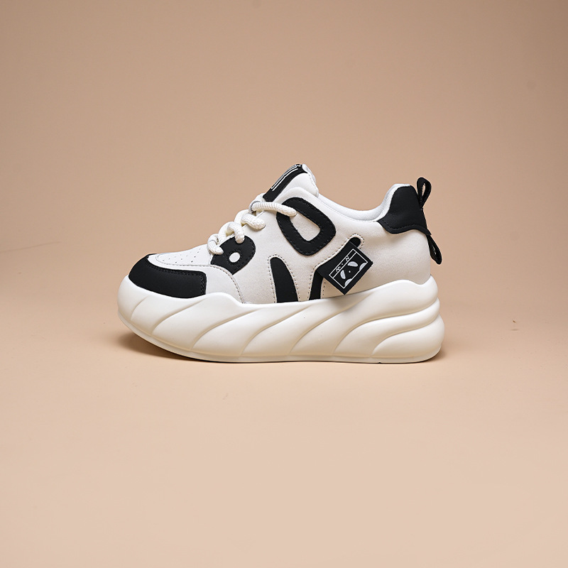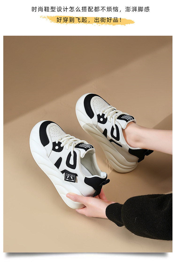 여성을위한 흑백 팬더 신발 2024 봄 새로운 올 매치 숨겨진 높이 증가 흰색 신발 캐주얼 스포츠 컬러 매칭 플랫폼 신발