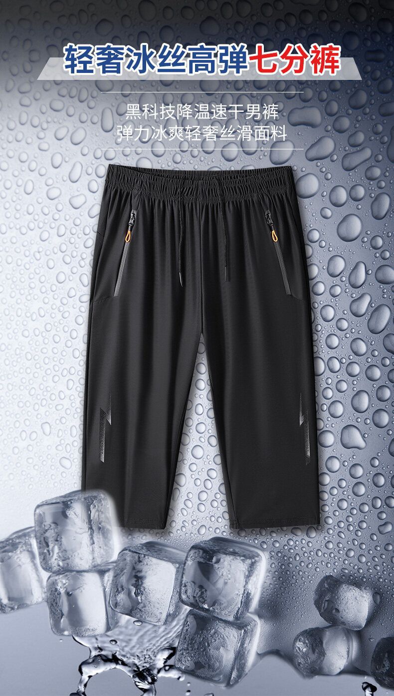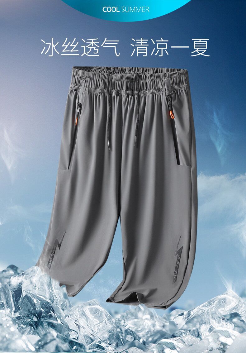 반바지 남자 여름 느슨한 무릎 위 아이스 실크 크롭 팬츠 플러스 사이즈 아이스 스트레치 반바지 스포츠 바지스토어 가기