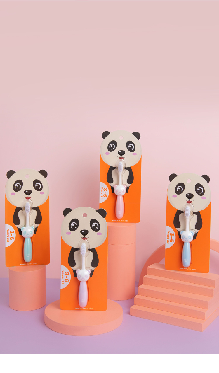 Lemeiguo 어린이 칫솔 부드러운 강모 고급 1-12 세 팬더 모양 양주 가정용 백화점 슈퍼마켓 칫솔 부드러운 강모