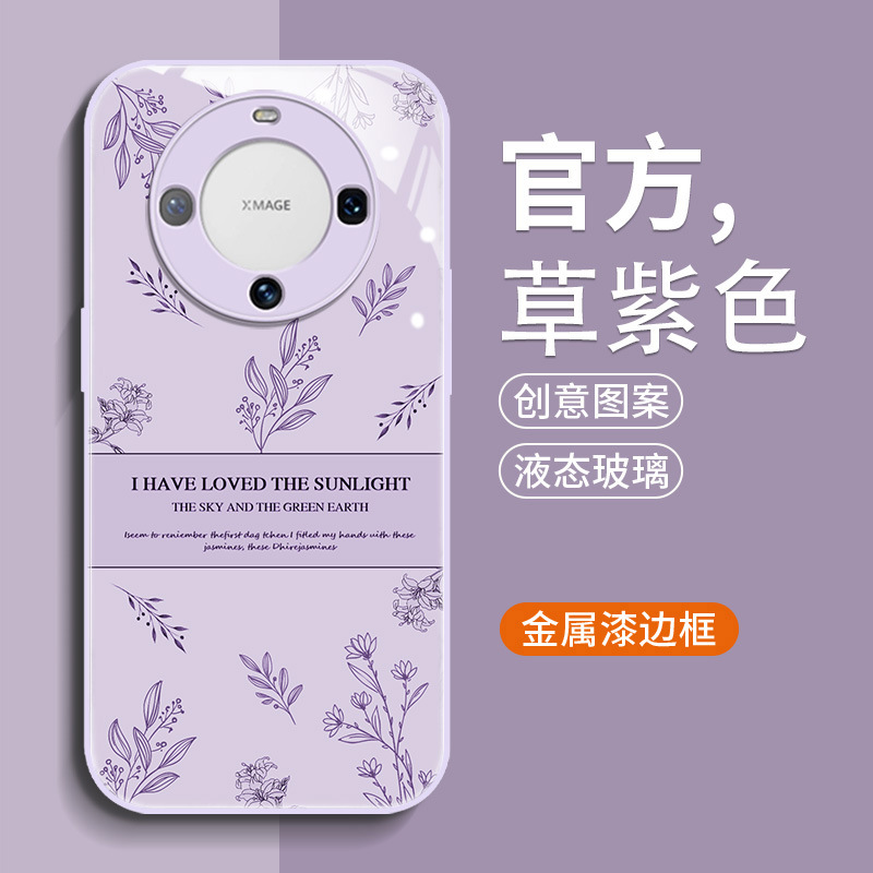 꽃 화웨이 mate60Pro 전화 케이스 P50Pro 유리 모든 것을 포함하는 여성의 30 간단한 보라색 P40 보호 케이스
