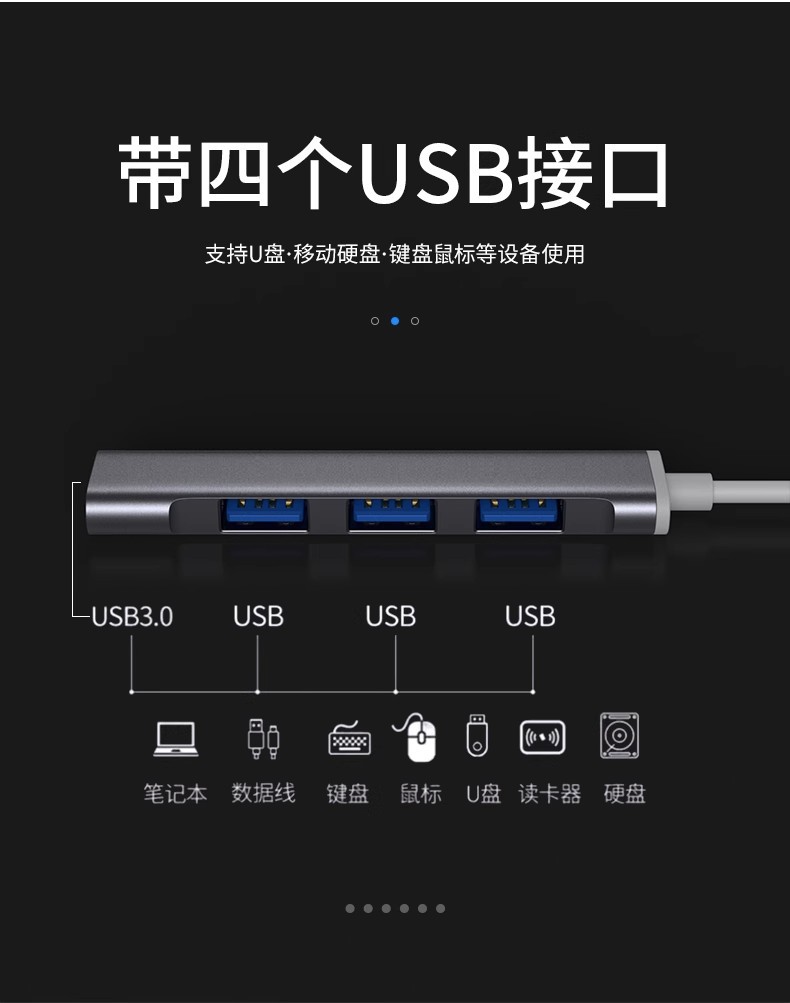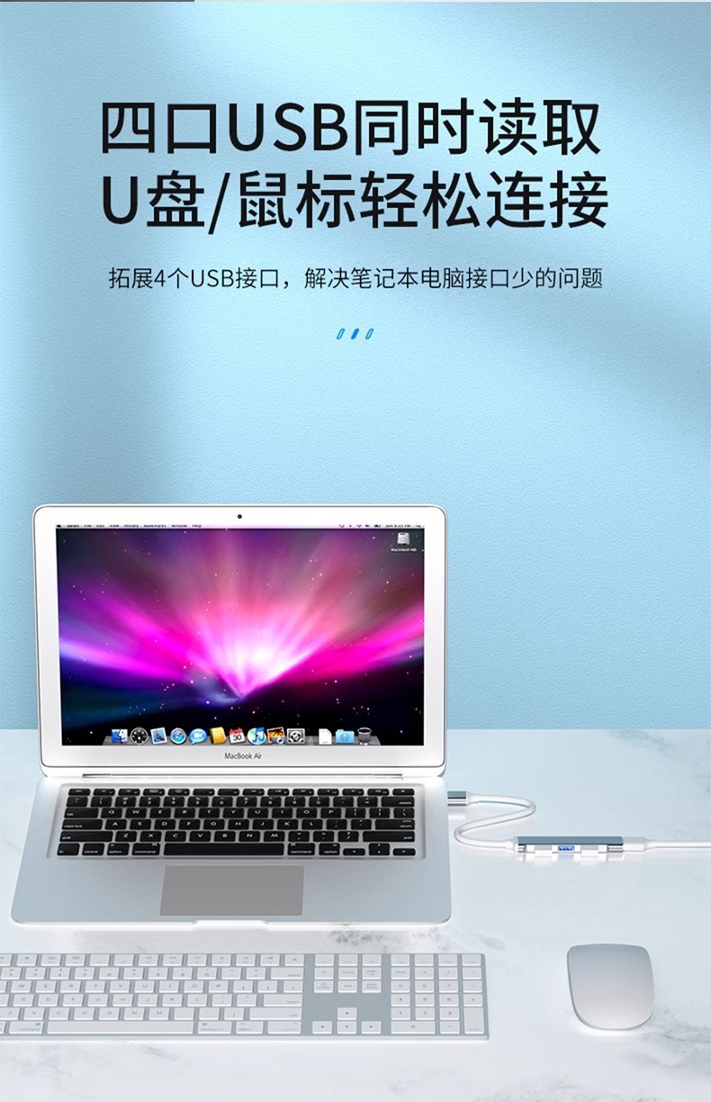 크로스보더 도매 USB 1대4 허브는 화웨이 태블릿, 휴대폰, 노트북 확장 포트 및 도킹 스테이션에 적합합니다.스토어 가기