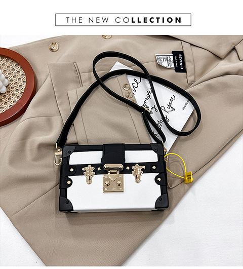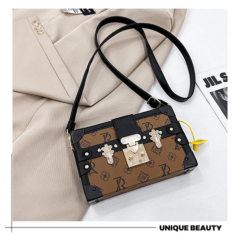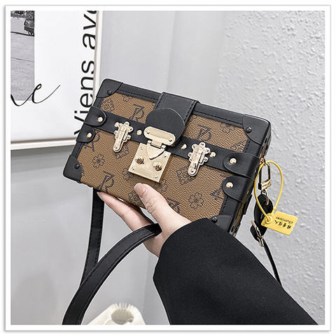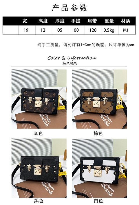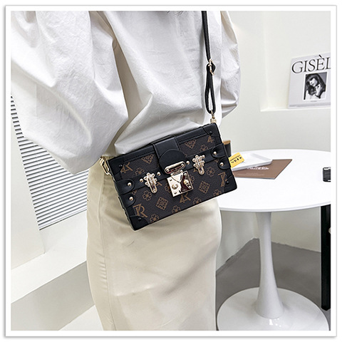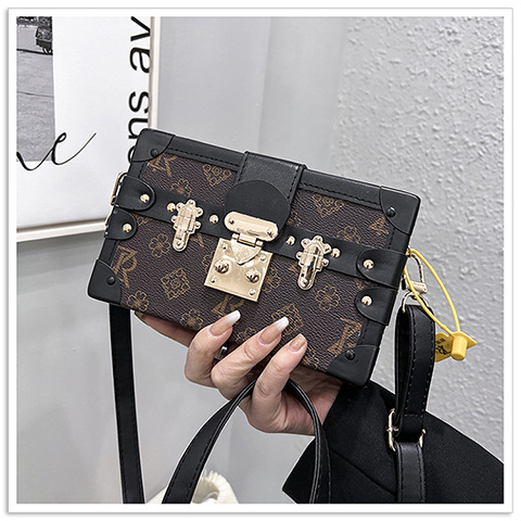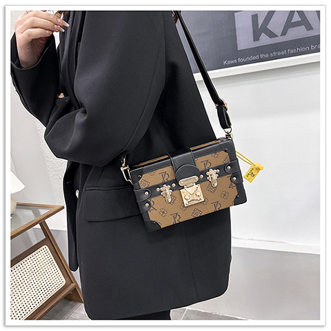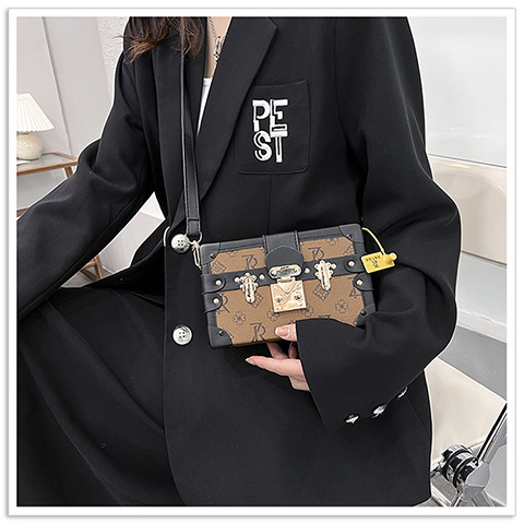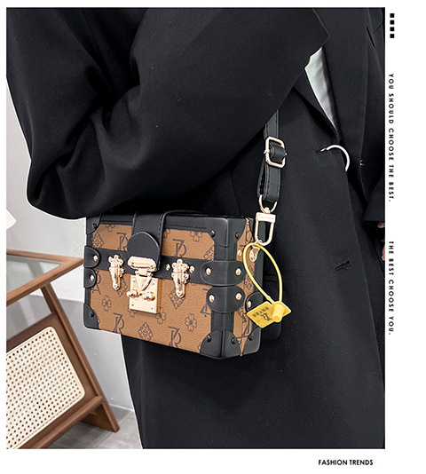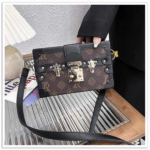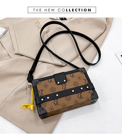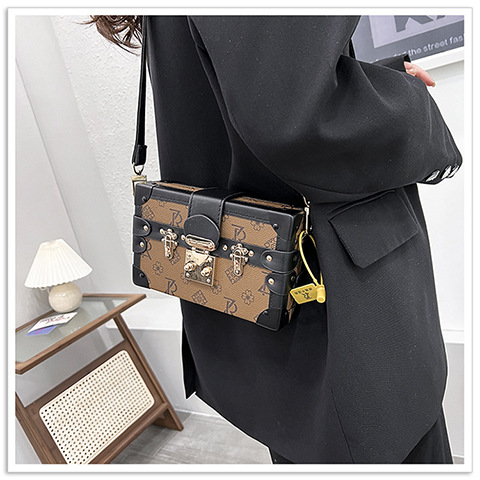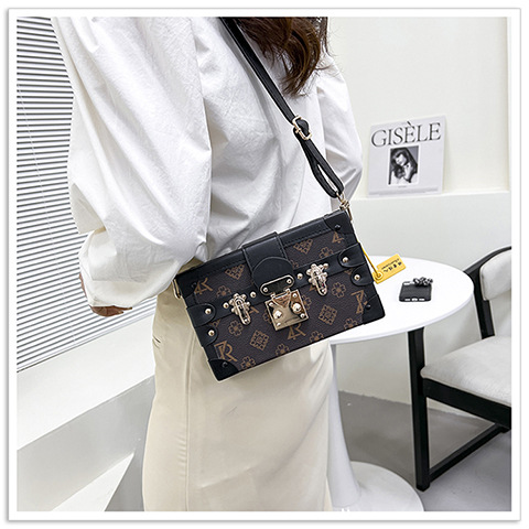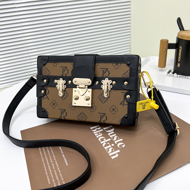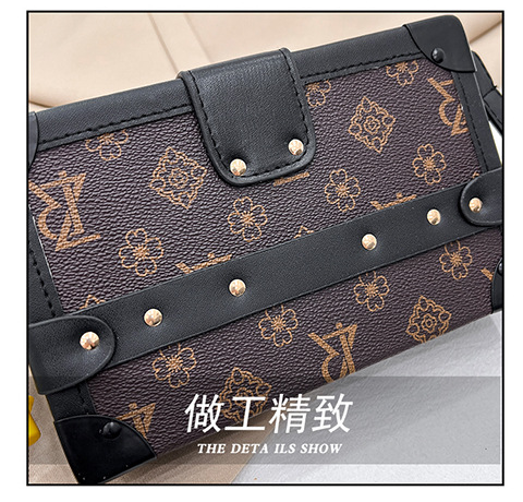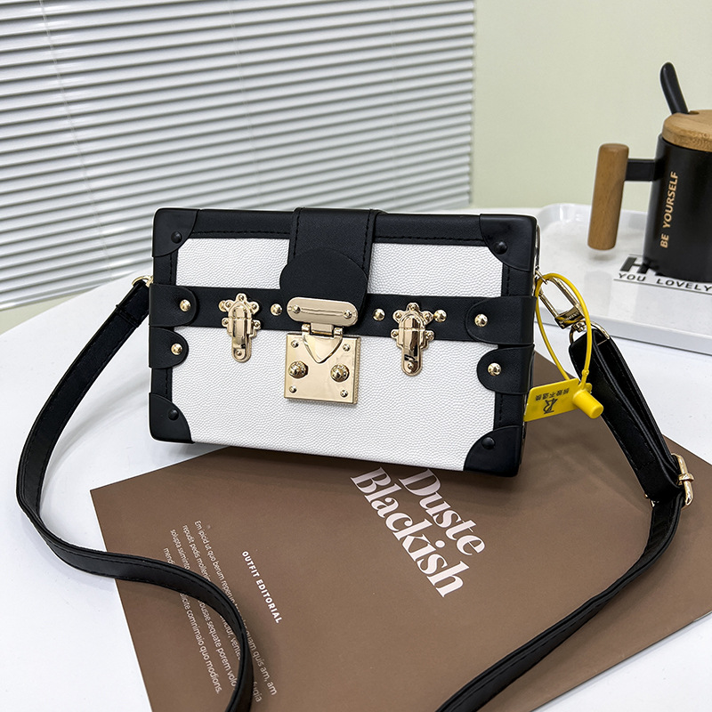 2024 새로운 국경 가방 여성 가방 레트로 패션 올 매치 리벳 박스 화장품 가방 단일 어깨 크로스 바디 작은 광장 가방