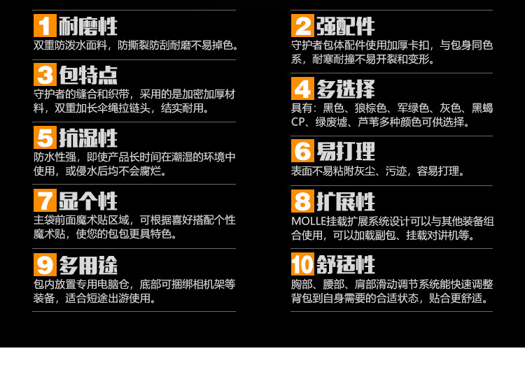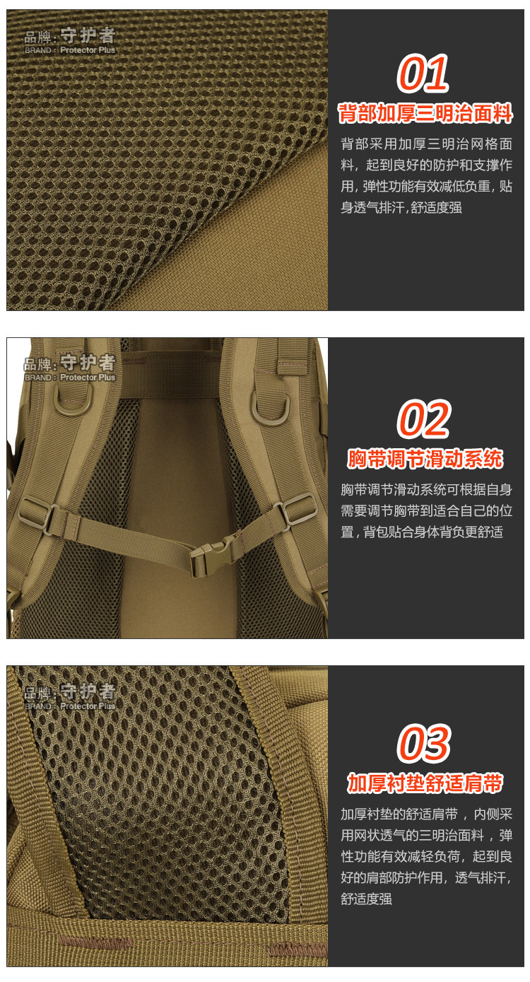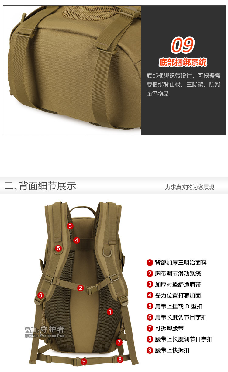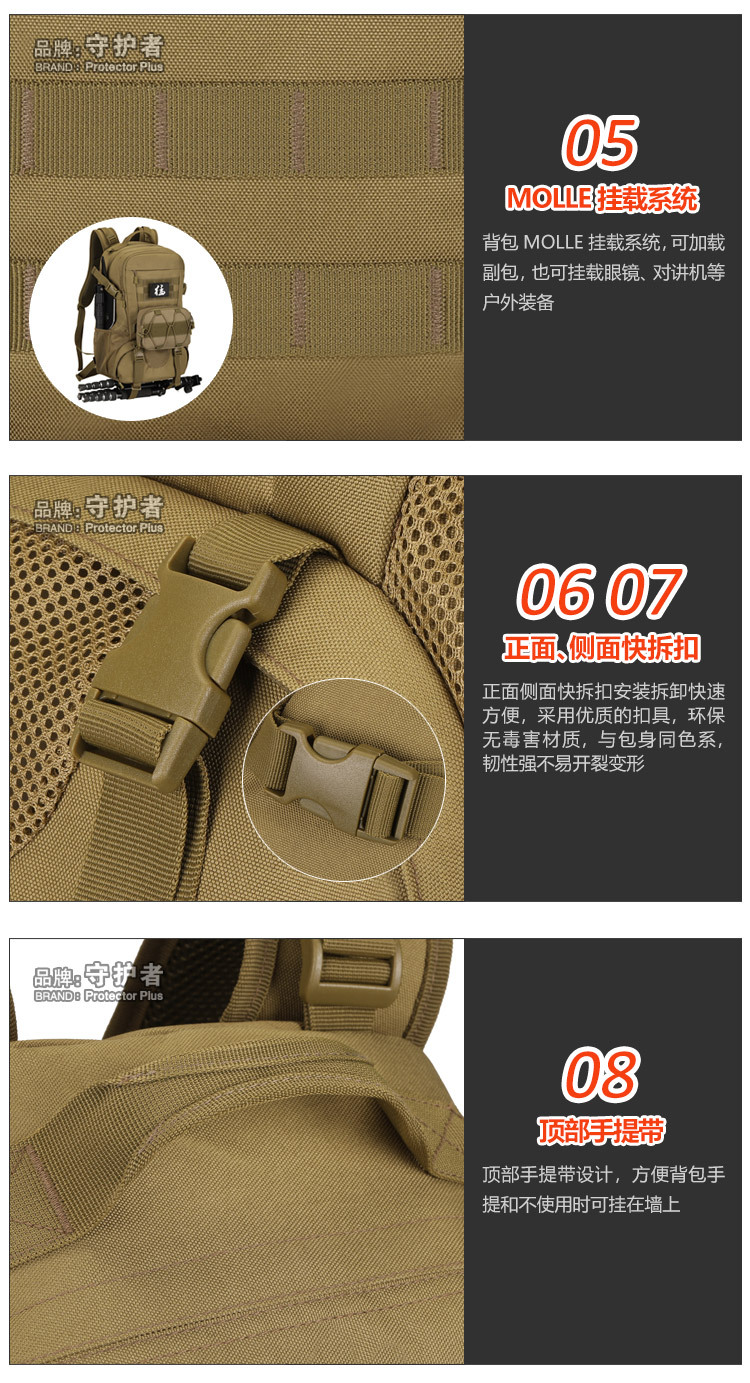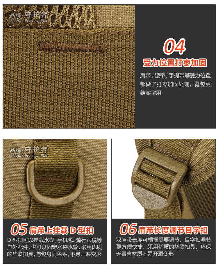守护者箱包厂是一家专业设计、生产、销售户外背包、腰包、胸包、斜挎包、腰带、背心等产品的诚信经营商家。守护者箱包厂拥有完整、科学的质量管理体系。自设有生产工厂,多名老员工在户外产品领域有着丰富的设计、生产经验,所有材料和配件均质量上乘符合相关标准,我们秉承专业敬业的精神,为客户提供好的产品和服务等优势占有市场,在产品的设计、包装、质量上不断的提升,获得大批客户的认可,产品远销海外。守护者箱包厂专门为国内外贸易公司、实体店、国内外网上店铺(速卖通、EBAY、WISH、亚马逊、天猫,淘宝C店,京东,拍拍)、军迷户外用品商家、箱包行业创业者等供应大量现货。本厂拥有守护者/Protector Plus户外品牌,考虑部分老客户拥有自主品牌,我们的产品除了吊牌没有任何中文标示、您可自定义品牌;并接受来样加工生产、贴牌、定制等,如有任何问题可在线联系我们客服旺旺,如果您对我们的产品有任何感受、想法或建议,欢迎随时提出!