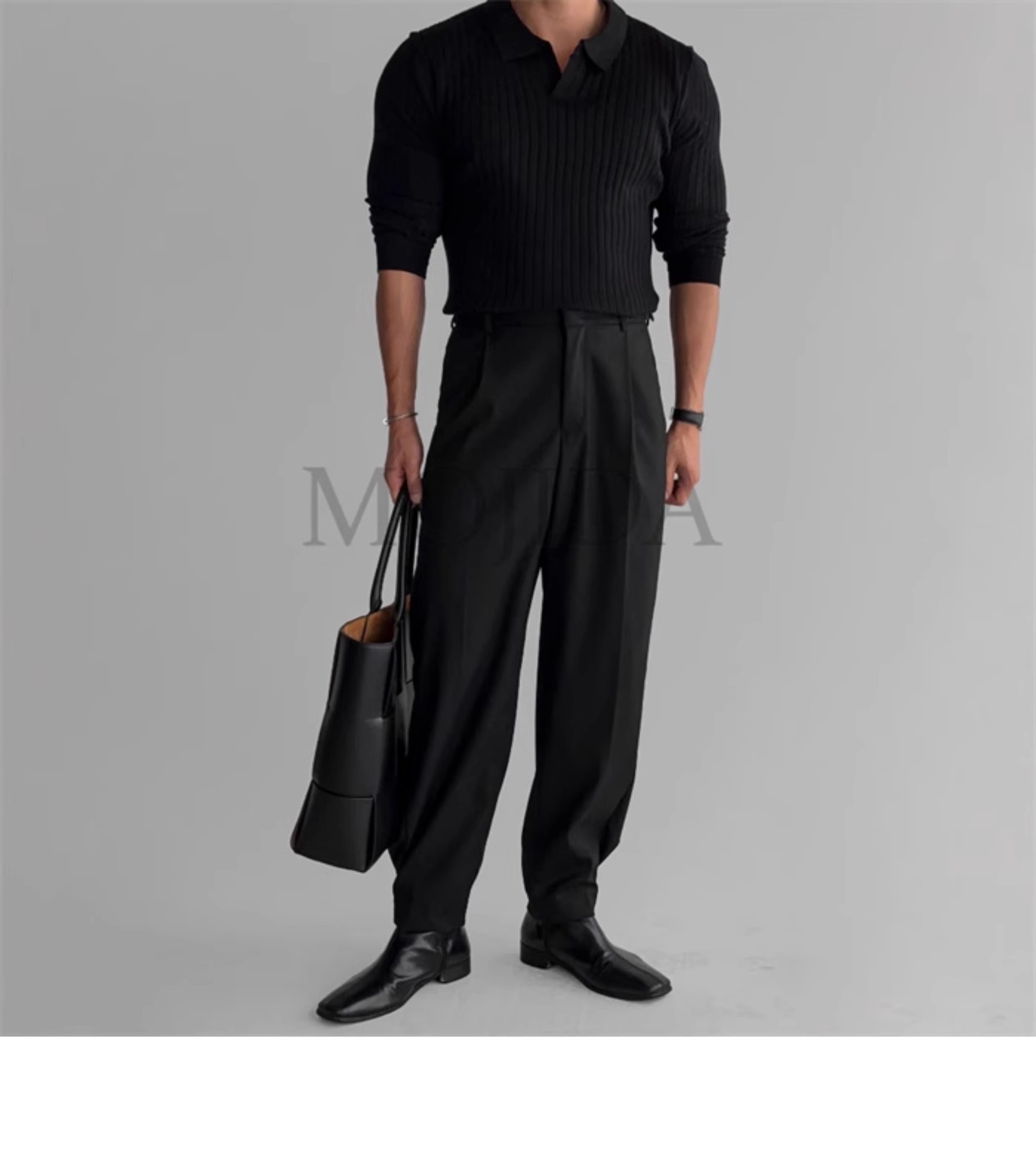 봄과 가을 새로운 한국 스타일 하이 엔드 남성 솔리드 컬러 스레드 탄성 옷깃 풀오버 슬림 니트 티셔츠 남성용스토어 가기