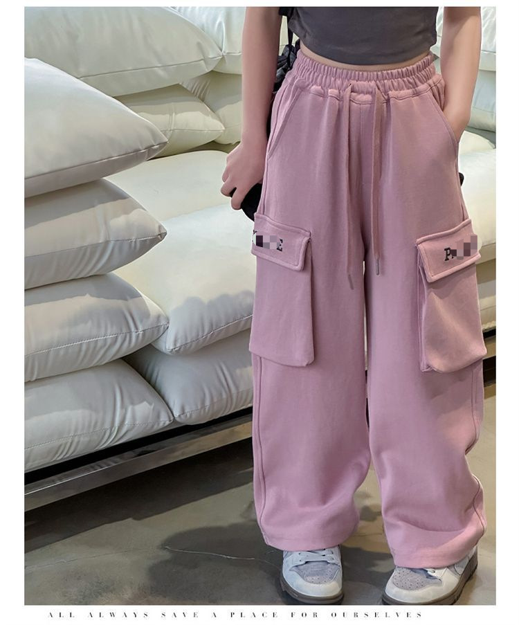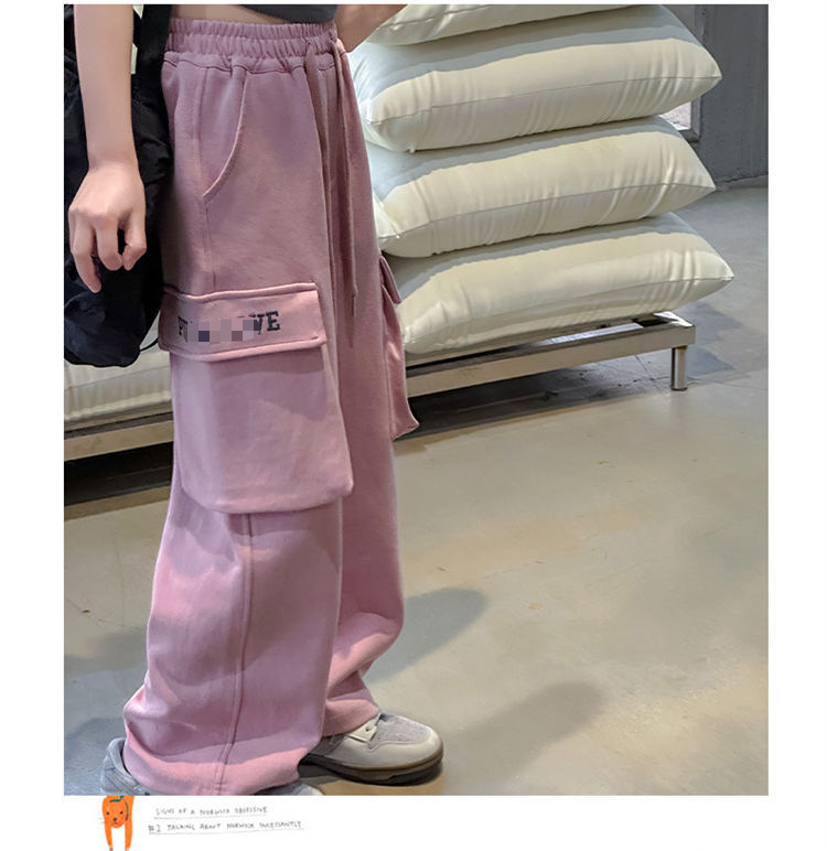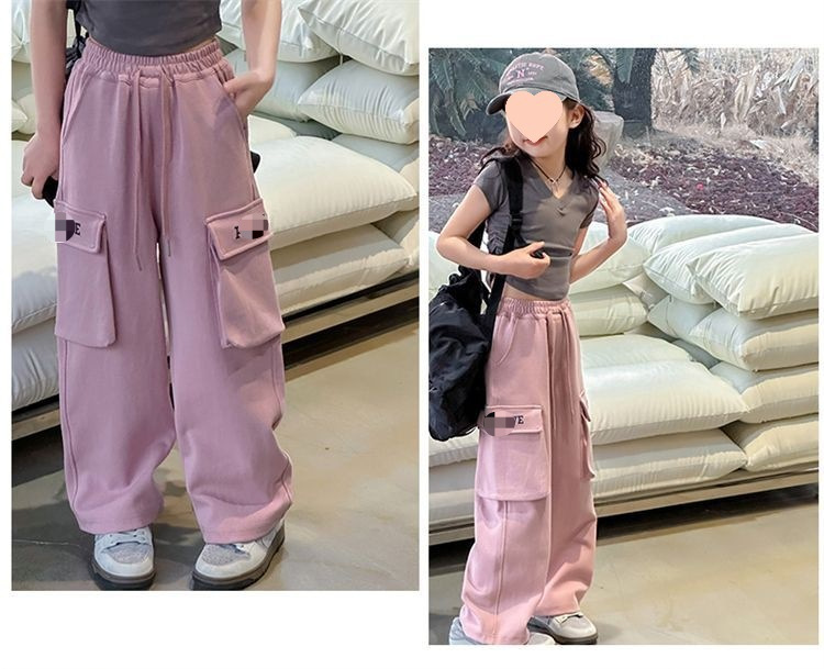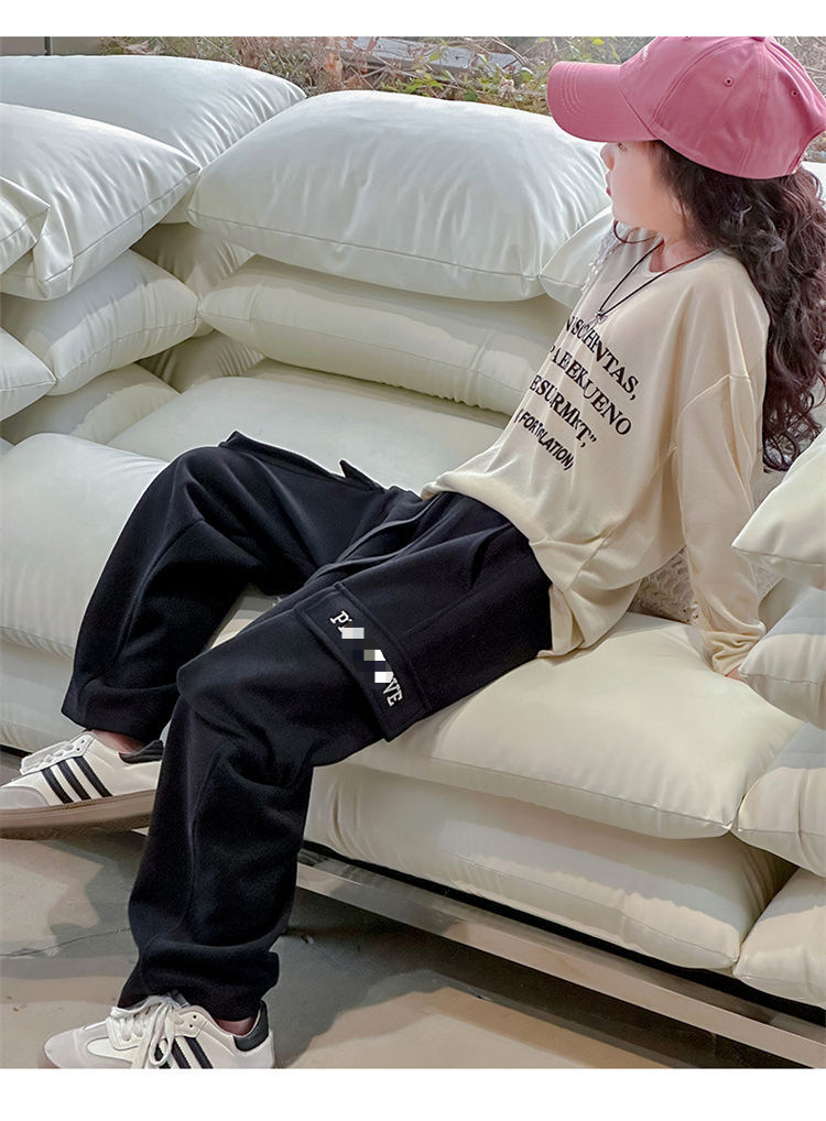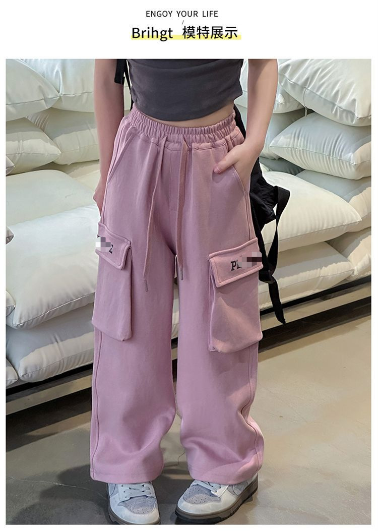 소녀 한국식 캐주얼 느슨한 넓은 다리 바지 어린이 2024 봄과 가을 새로운 유행 편지 모두 일치하는 바지스토어 가기