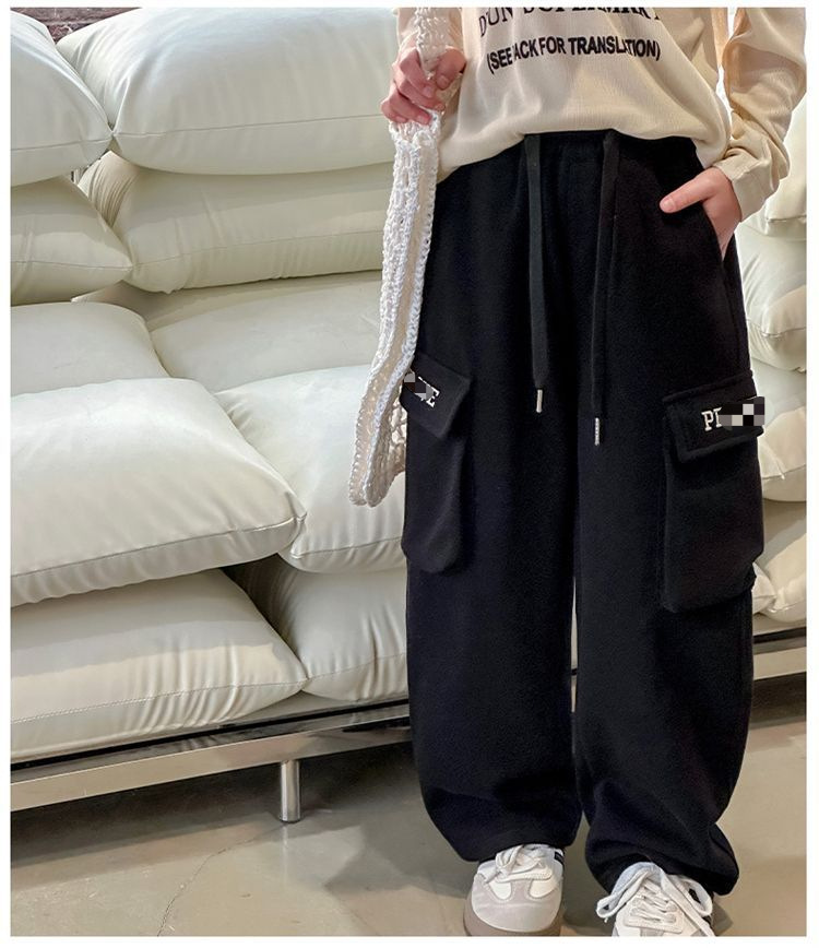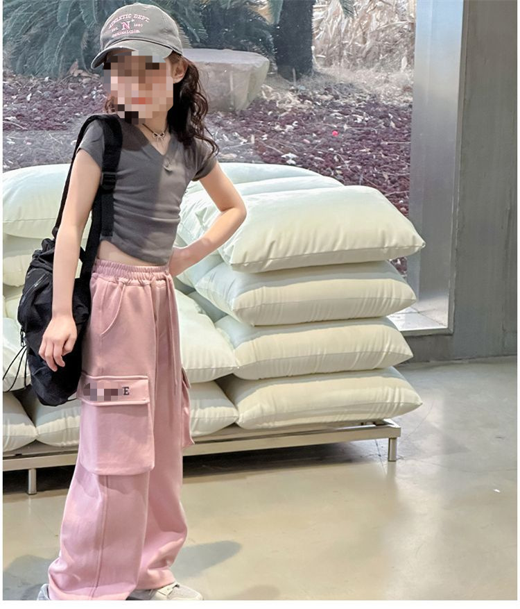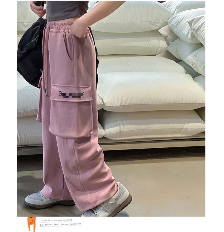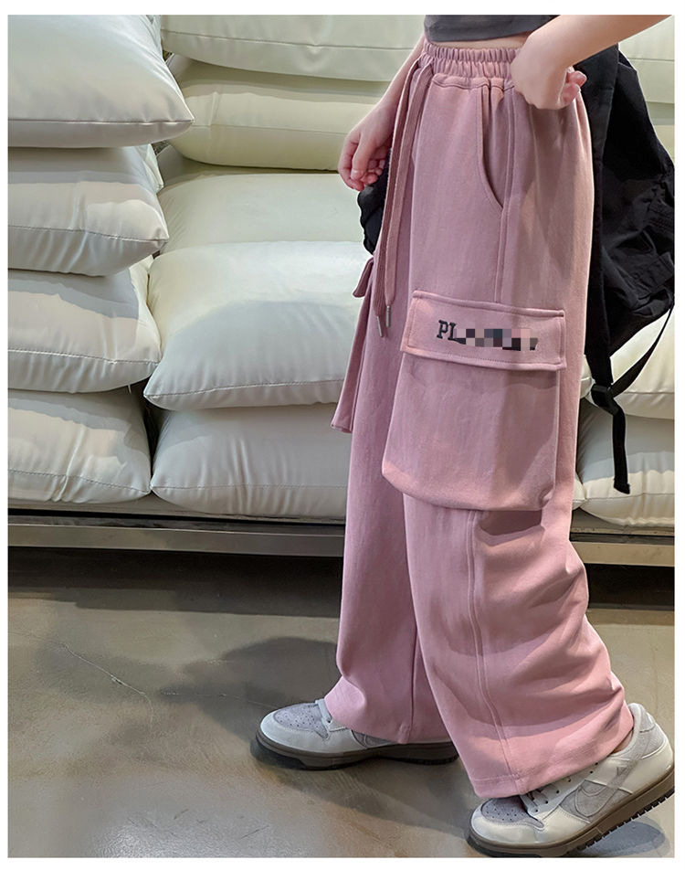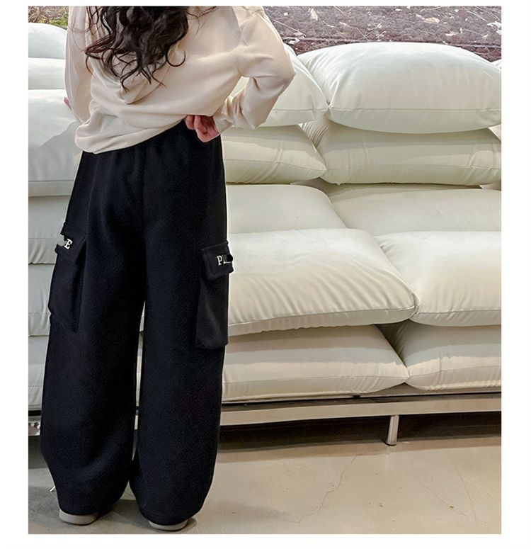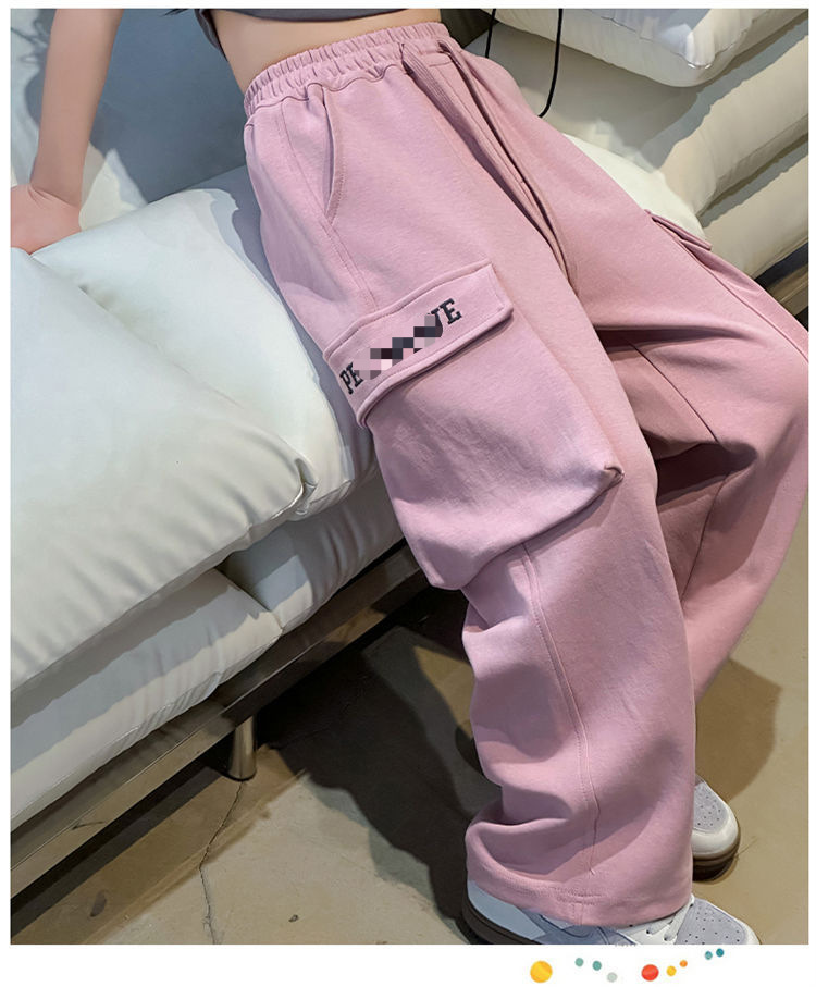 소녀 한국식 캐주얼 느슨한 넓은 다리 바지 어린이 2024 봄과 가을 새로운 유행 편지 모두 일치하는 바지스토어 가기