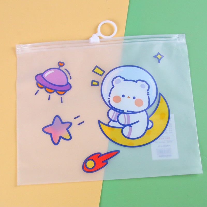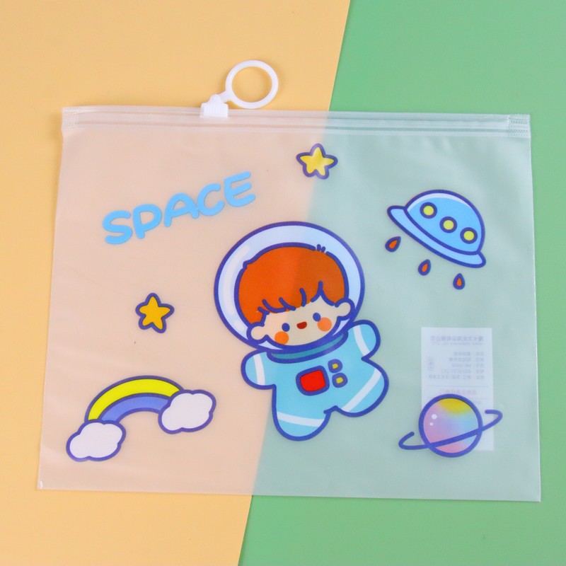 두꺼운 투명 방수 drastring 가방 만화 PVC 학생 시험 종이 저장 가방 반지 지퍼 연필 케이스 작은 파일 가방