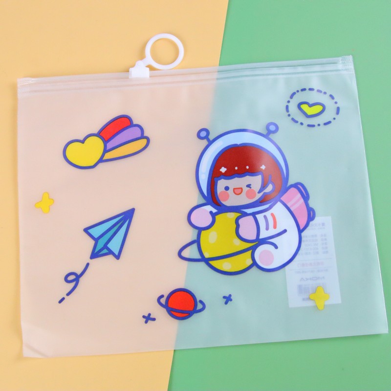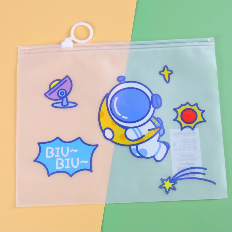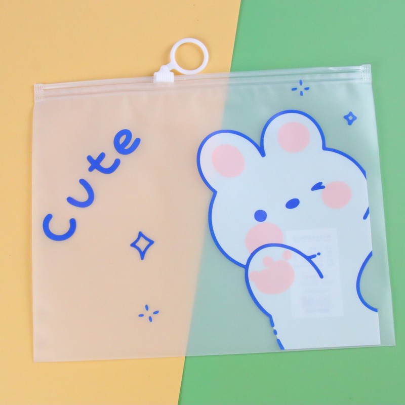 두꺼운 투명 방수 drastring 가방 만화 PVC 학생 시험 종이 저장 가방 반지 지퍼 연필 케이스 작은 파일 가방스토어 가기