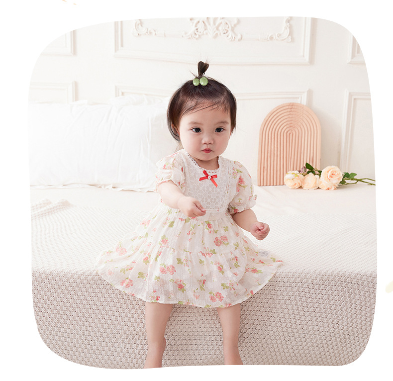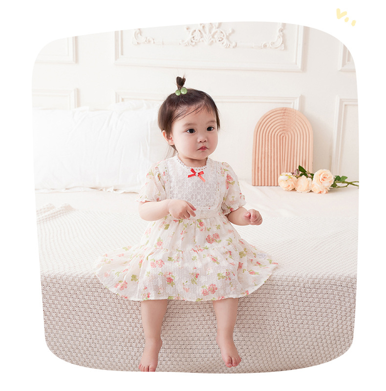아기 여름 원피스 2024 여자 한국 스커트 더블 레이어 꽃 원피스 공주 원피스 3108스토어 가기