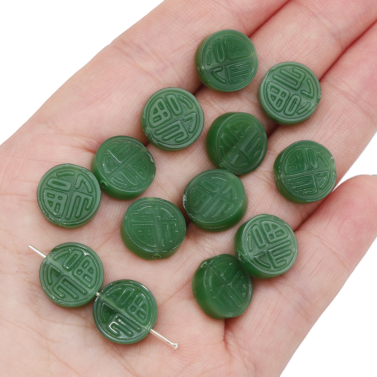 유리 모조 옥 구슬 매화 호박 구슬 행운의 브랜드 구리 동전 DIY 수제 구슬 귀걸이 팔찌 펜던트 느슨한 구슬