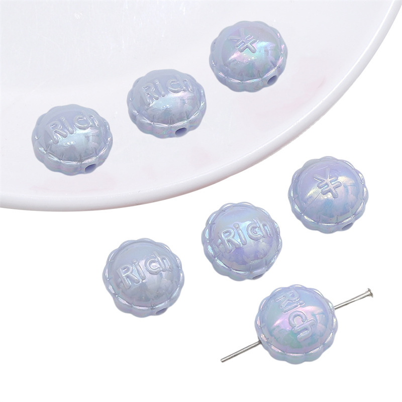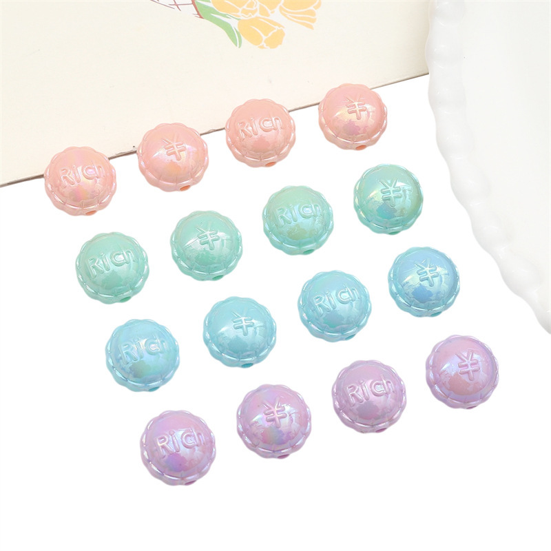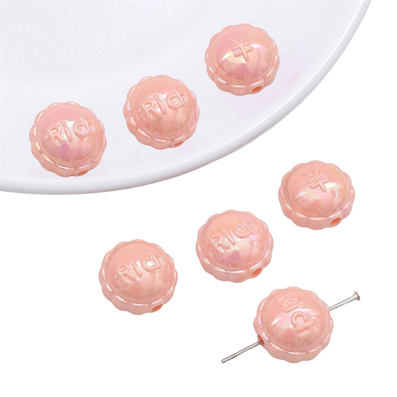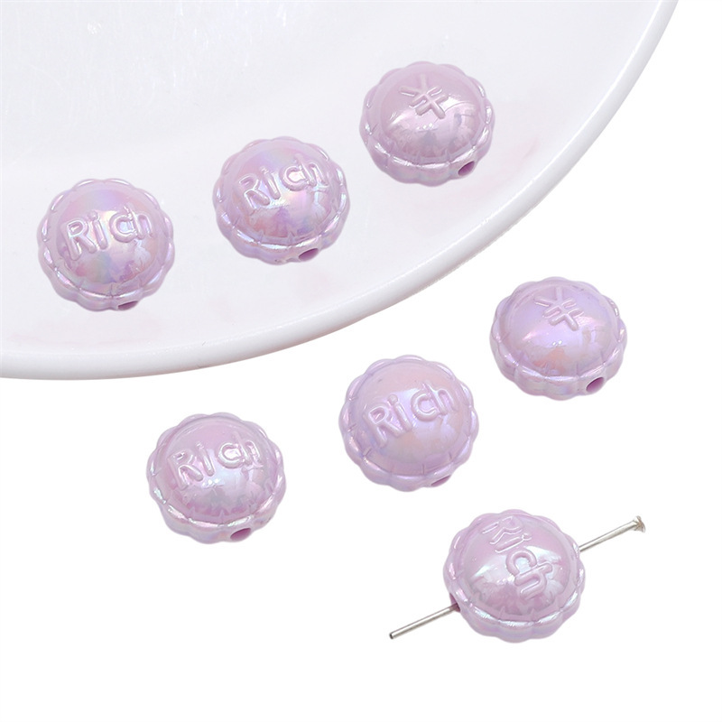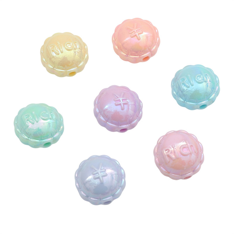 아크릴 솔리드 컬러 도금 레이스 플랫 라운드 구슬 손 구슬 느슨한 구슬 diy 수제 팔찌 목걸이 보석 액세서리