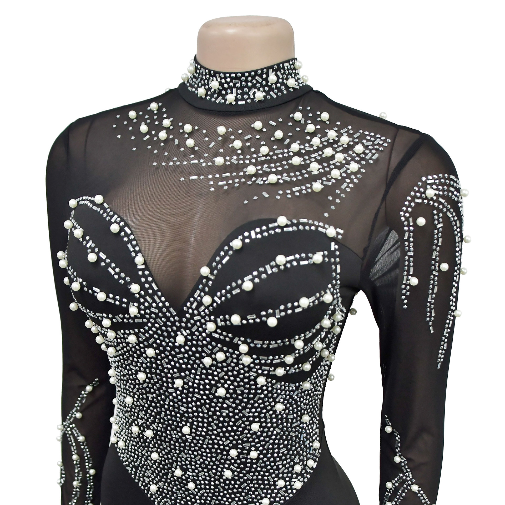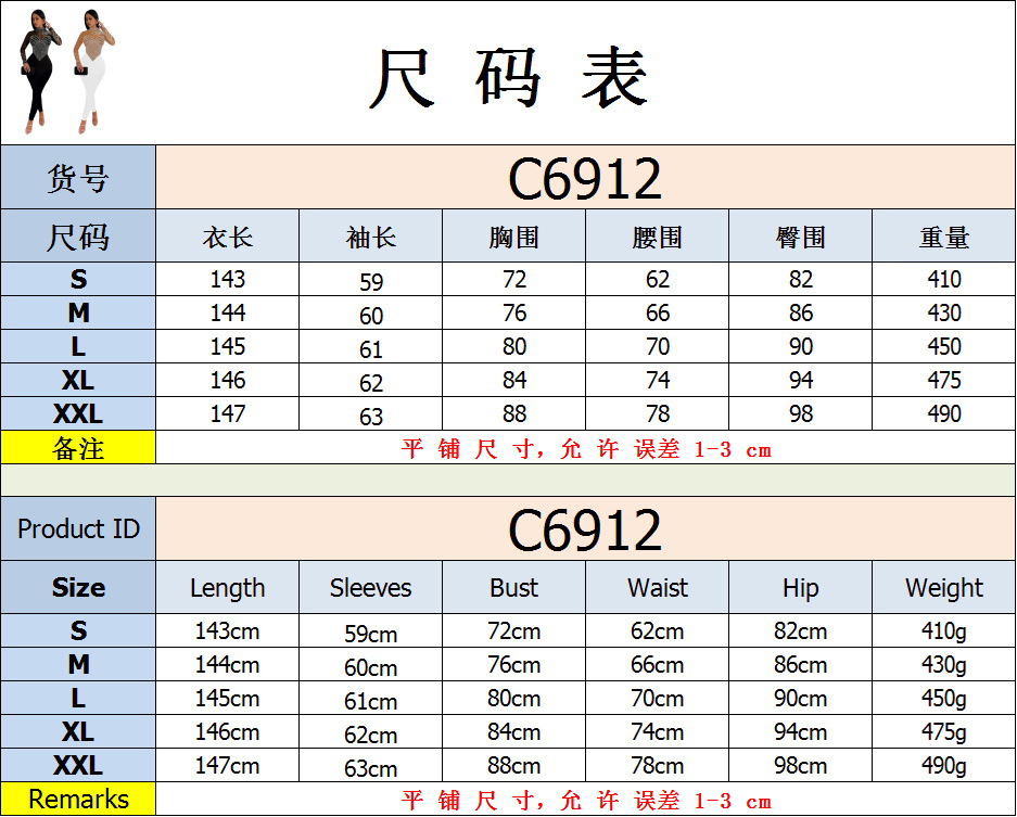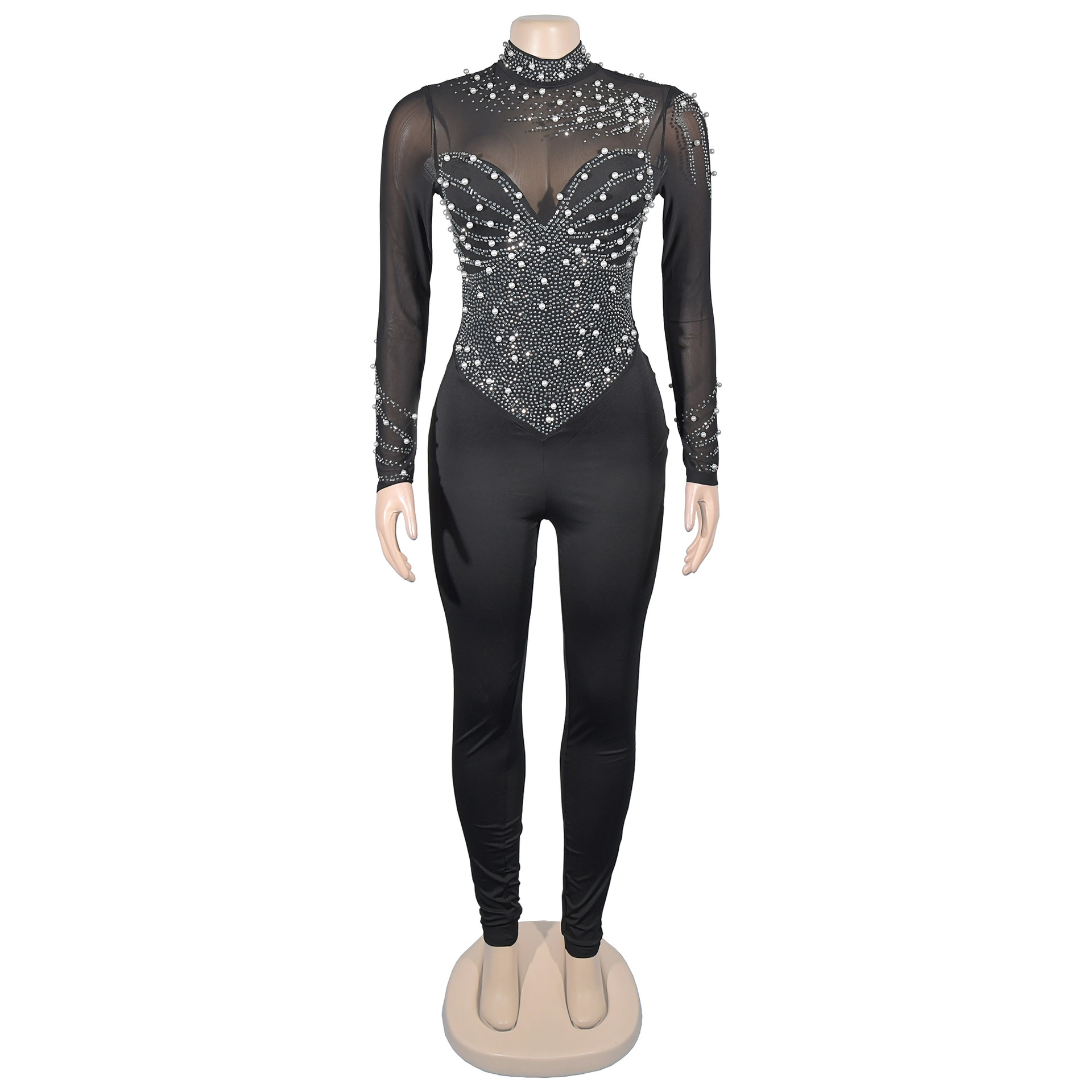 C6912 국경 간 AliExpress 아마존 유럽과 미국 패션 여성의 단색 메쉬 라인석 긴팔 바지 점프 수트스토어 가기
