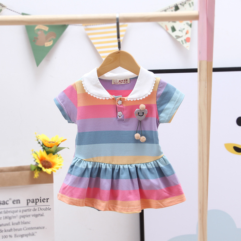 소녀 원피스 2023 여름 새로운 한국식 아기 소녀 프레피 스타일 줄무늬 주름 치마 어린이 여름 원피스스토어 가기