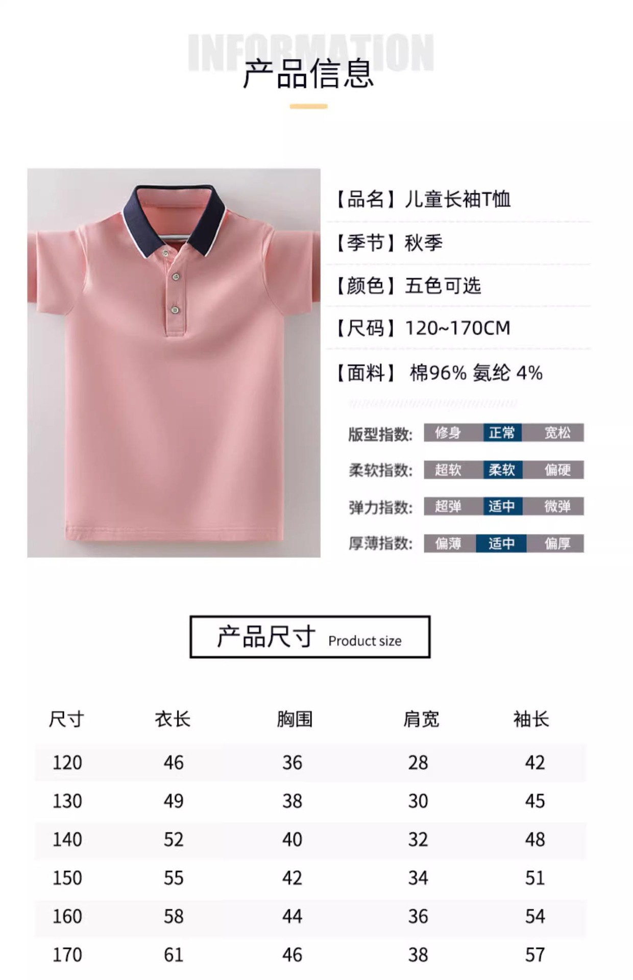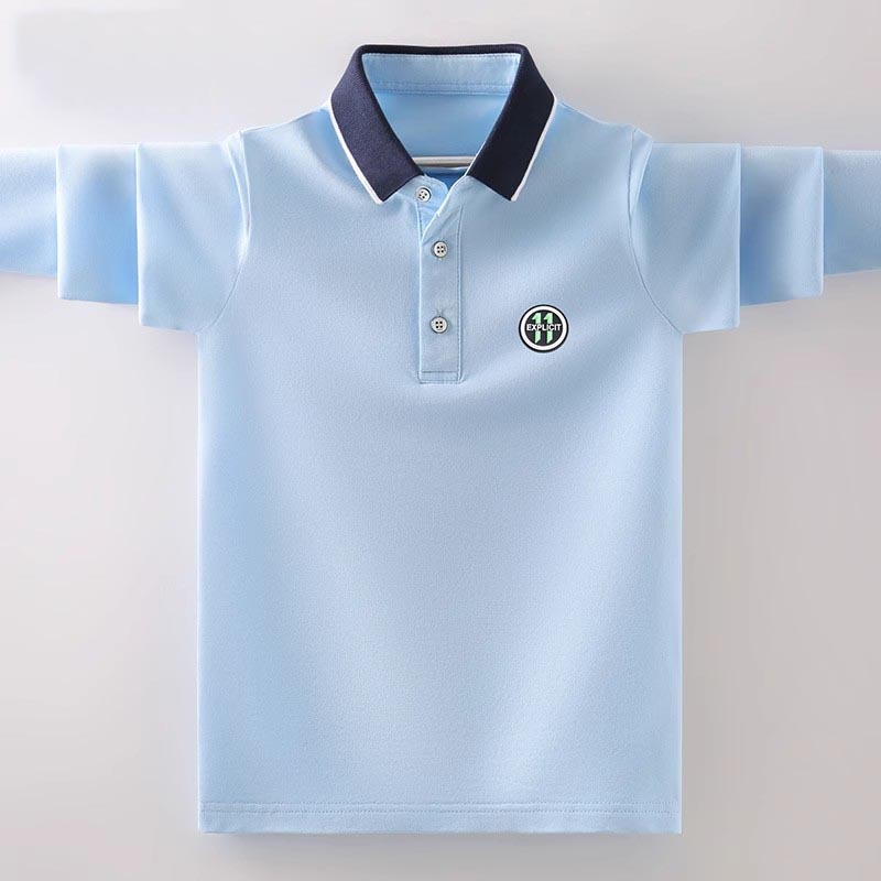 남학생 긴팔 티셔츠 옷깃 폴로 셔츠 가을 옷 봄과 가을 옷 어린이 밑바닥 셔츠 중대형 아동용 탑 학생 교복스토어 가기
