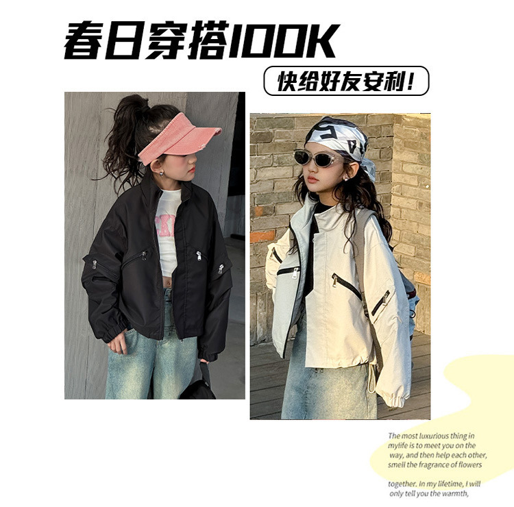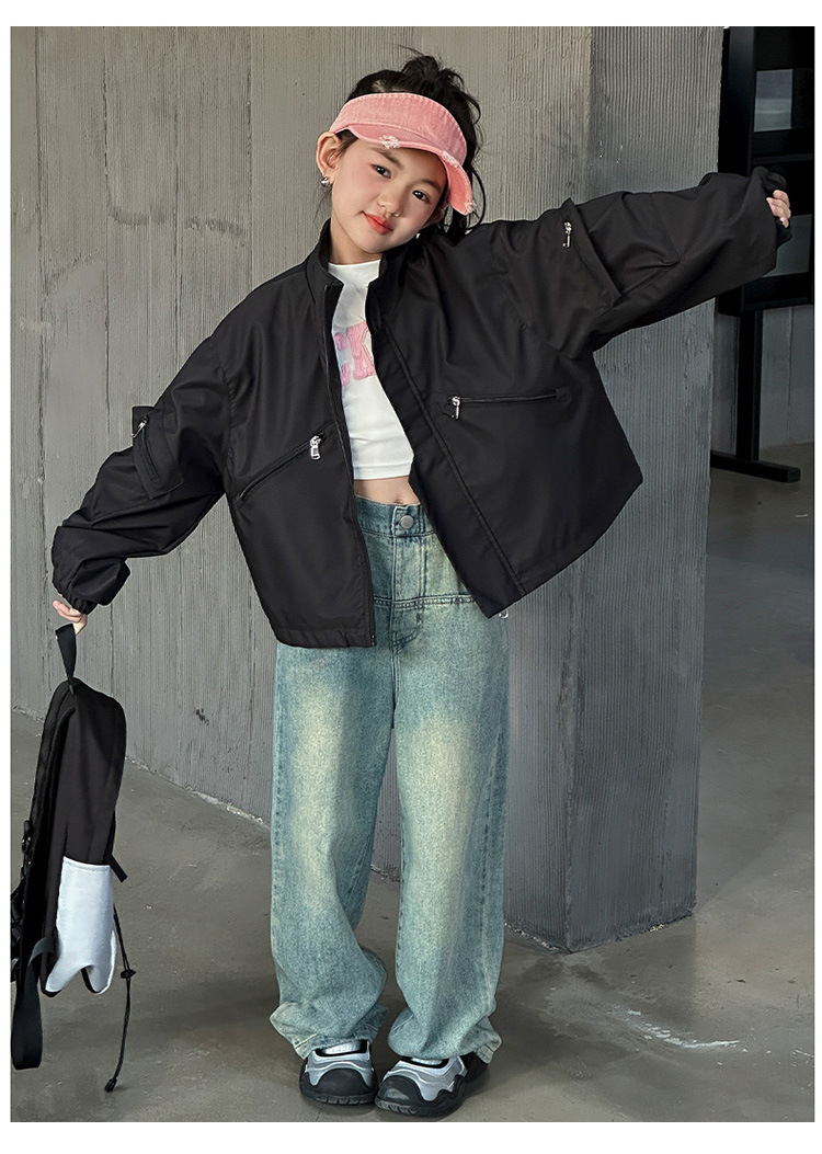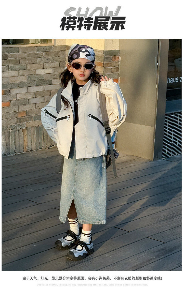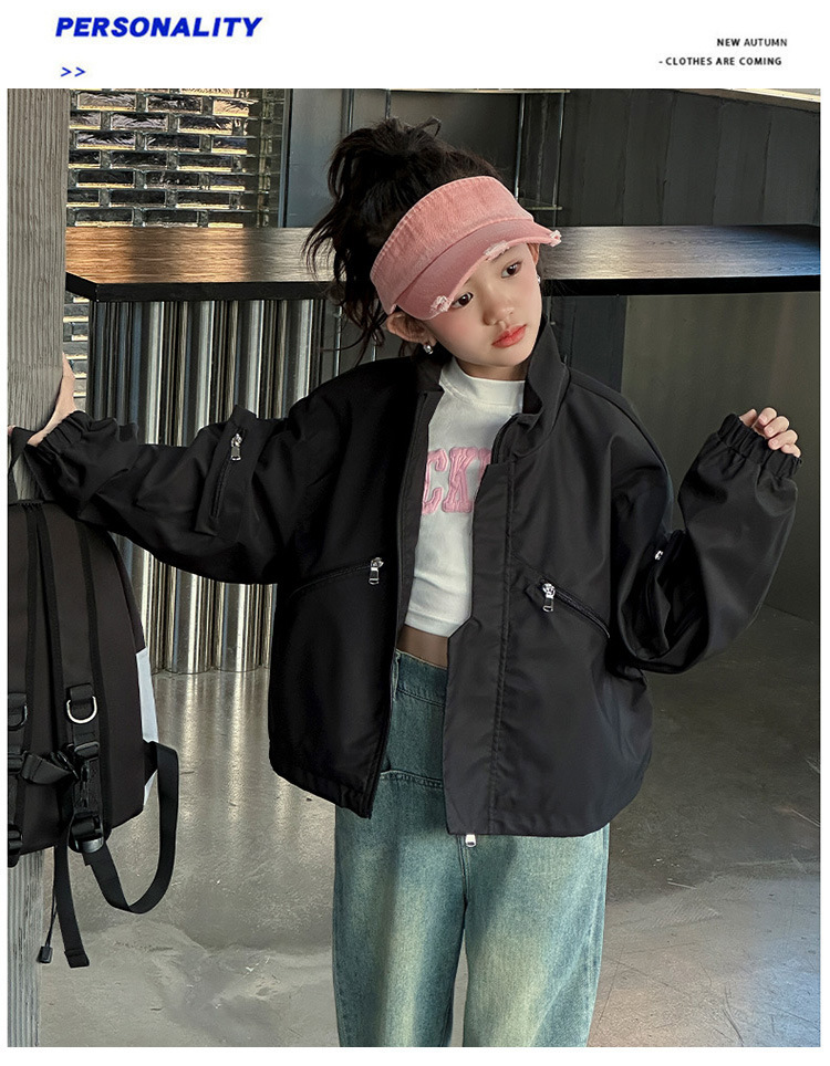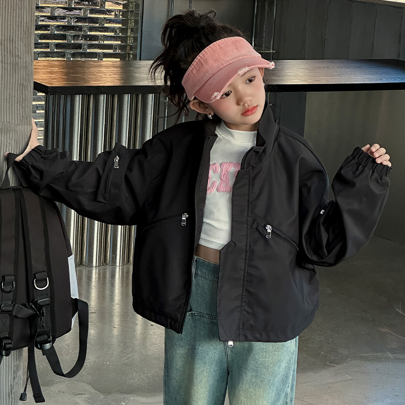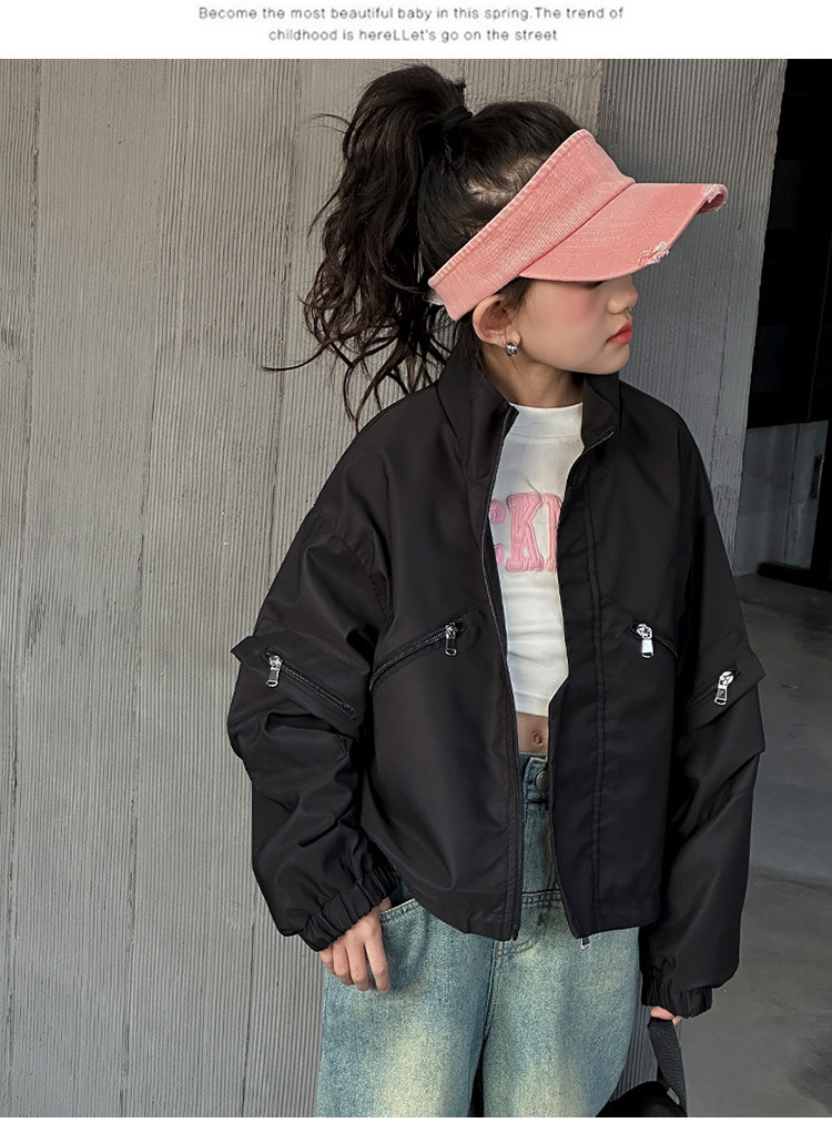 소녀 재킷 재킷 2024 새로운 패션 오토바이 의류 트렌디 쿨 미디어와 큰 아이들 한국식 작업복 재킷 봄 의류스토어 가기