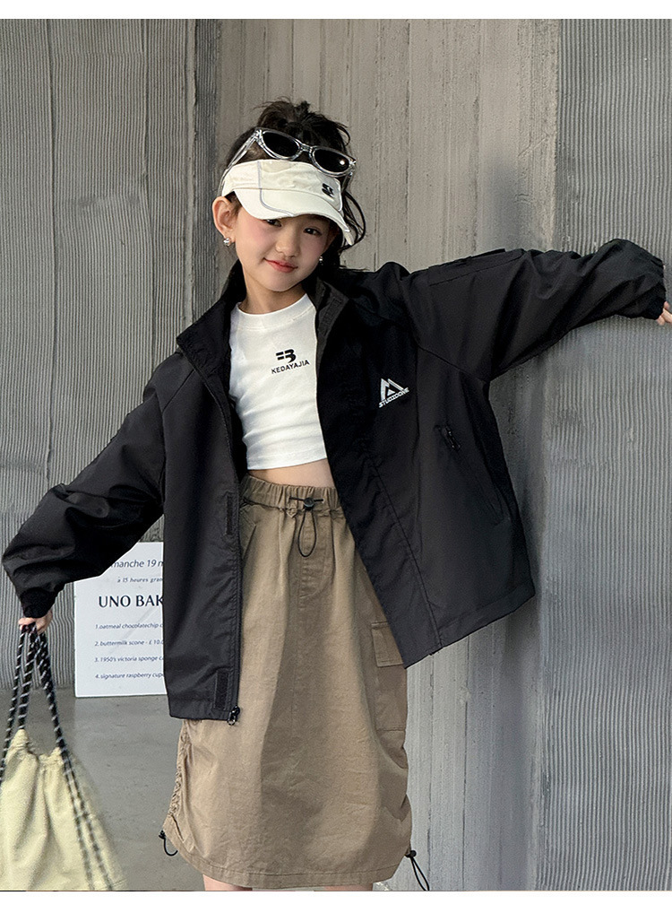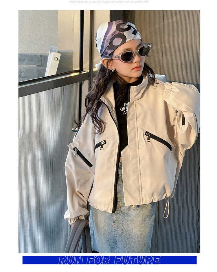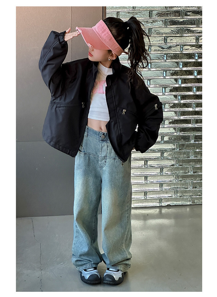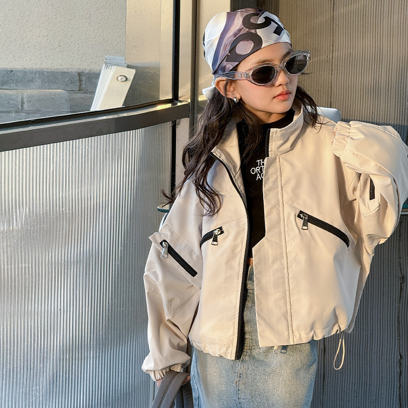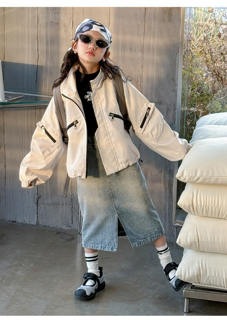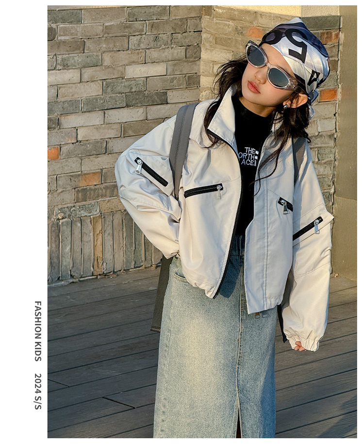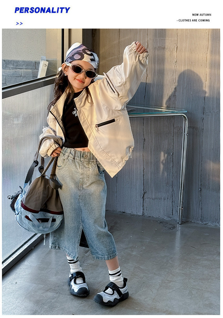 소녀 재킷 재킷 2024 새로운 패션 오토바이 의류 트렌디 쿨 미디어와 큰 아이들 한국식 작업복 재킷 봄 의류스토어 가기