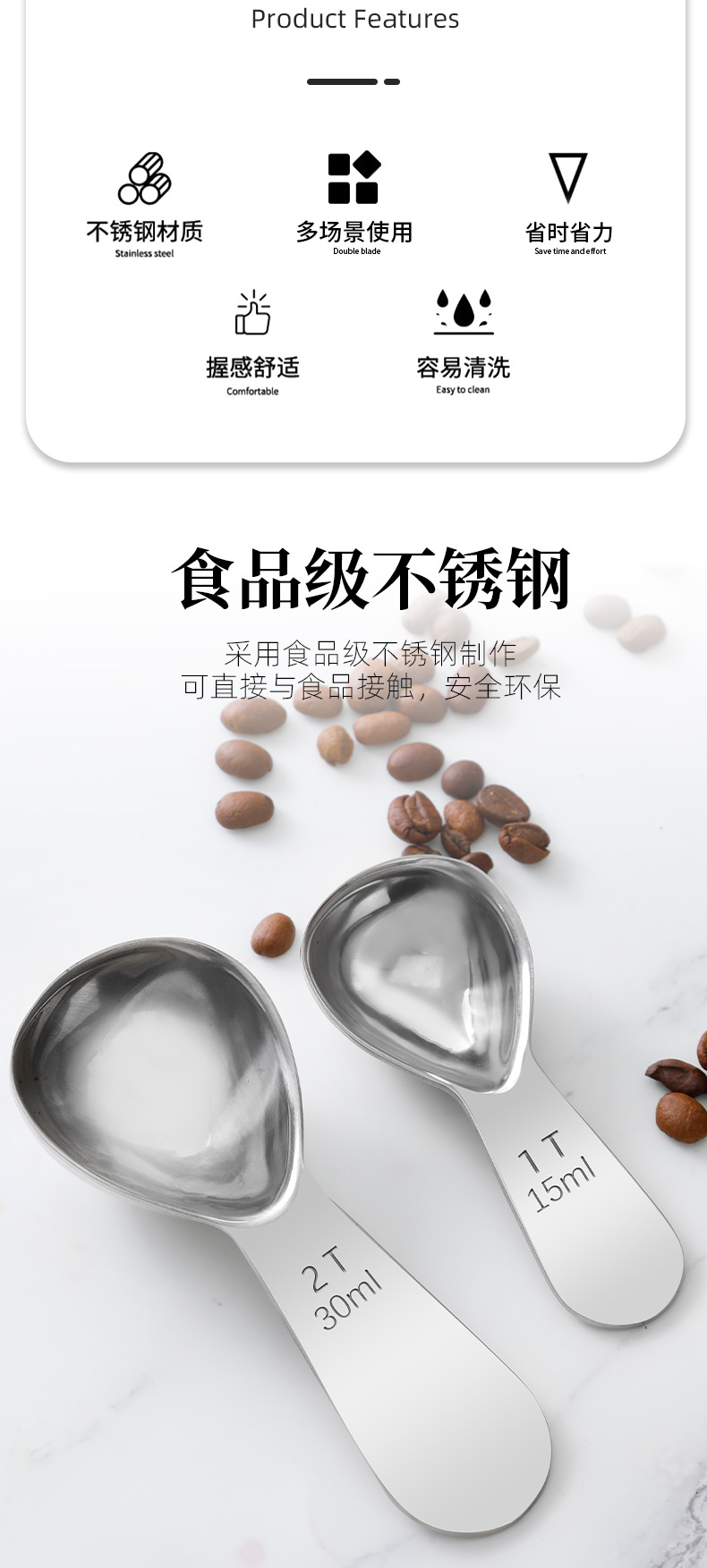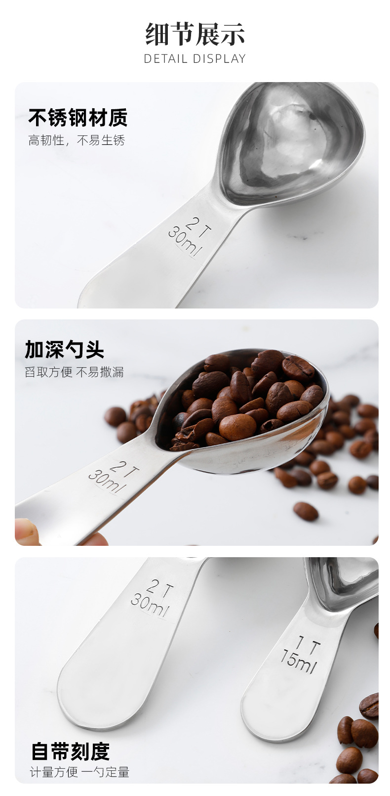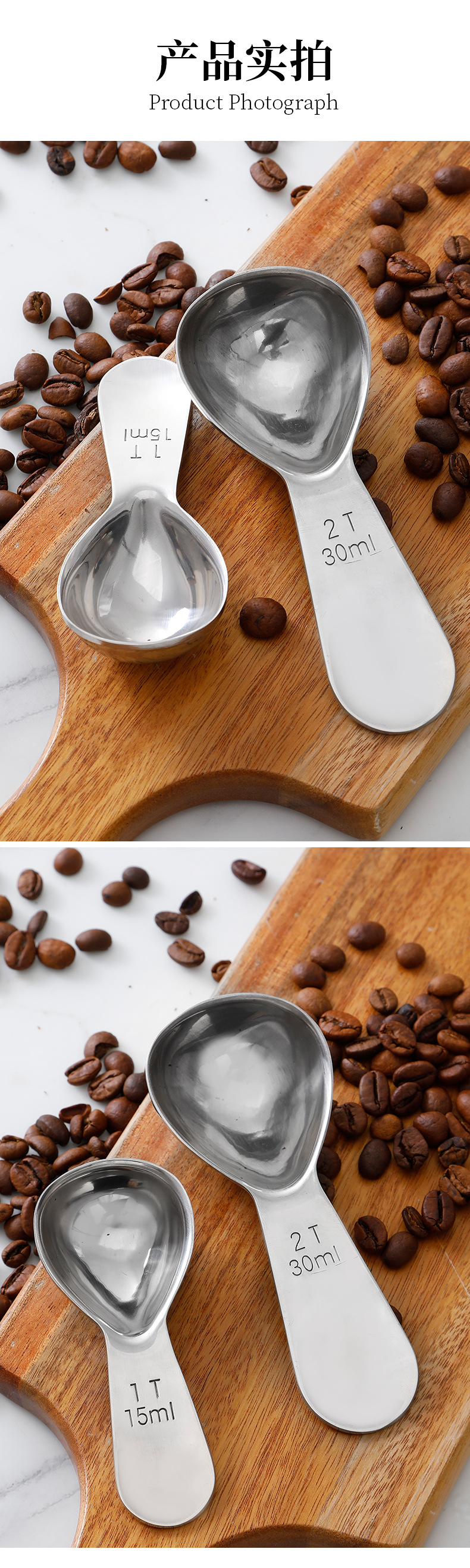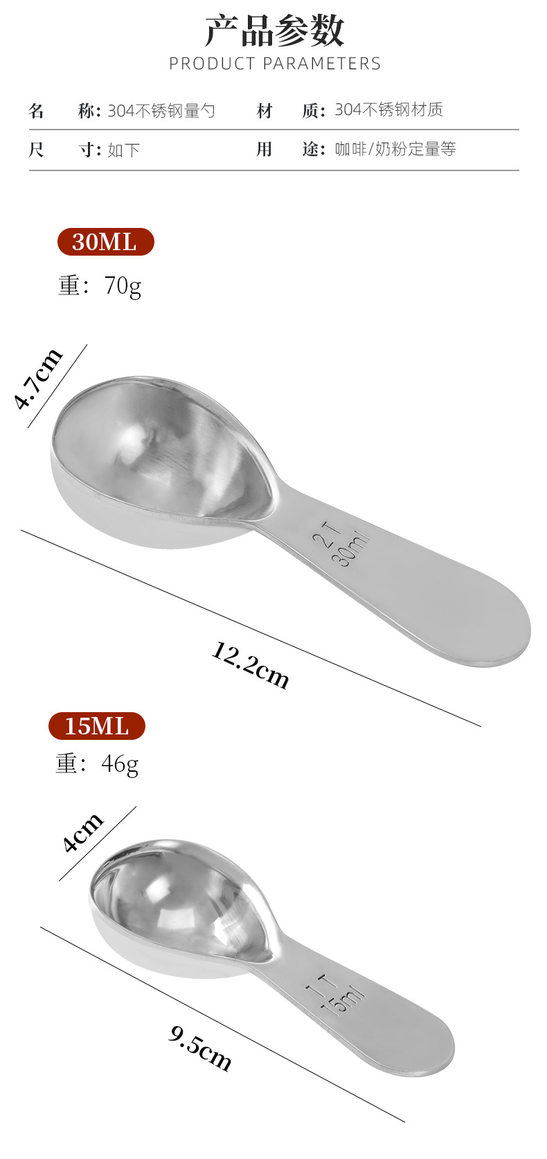 재고 304 두꺼운 스테인리스 커피 스푼 15ml 30ml 스케일 측정 숟가락 측정 숟가락 커피 분유 차 측정 숟가락