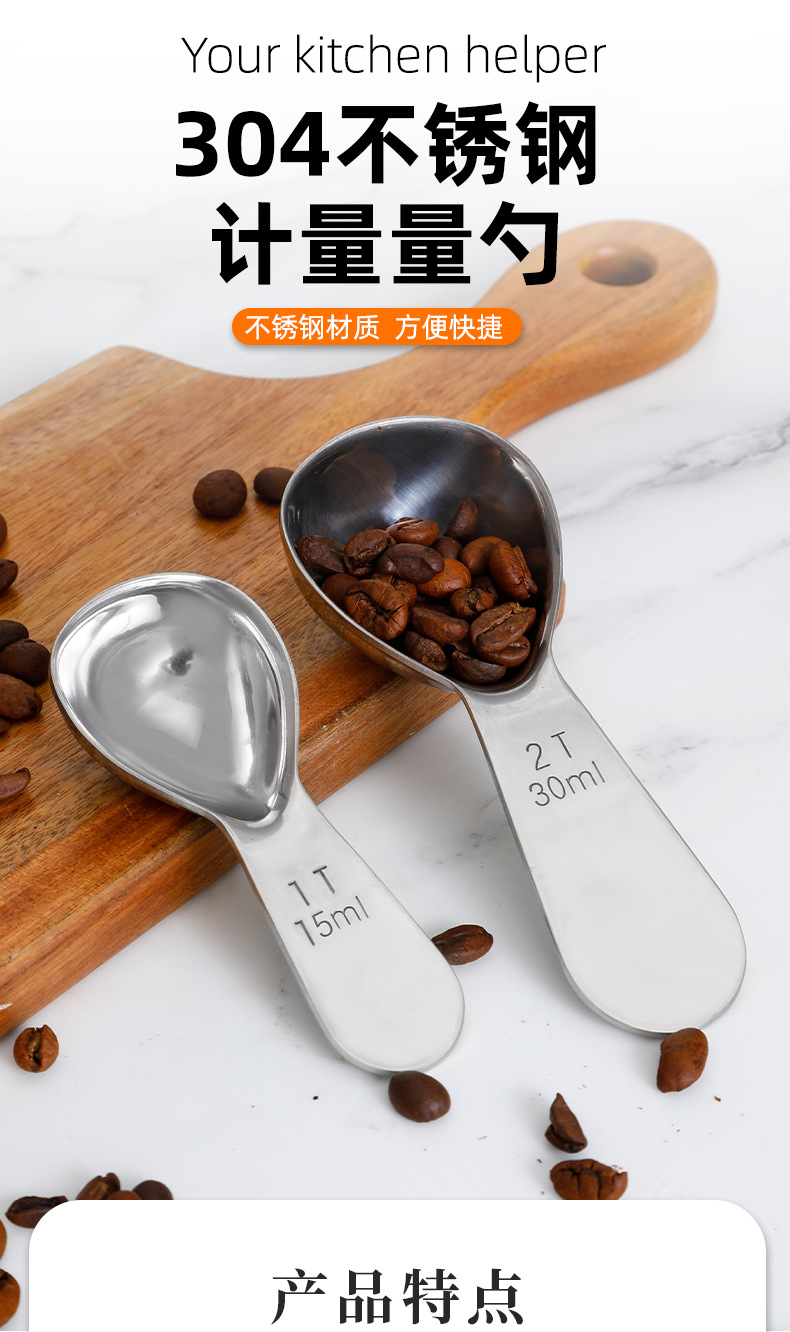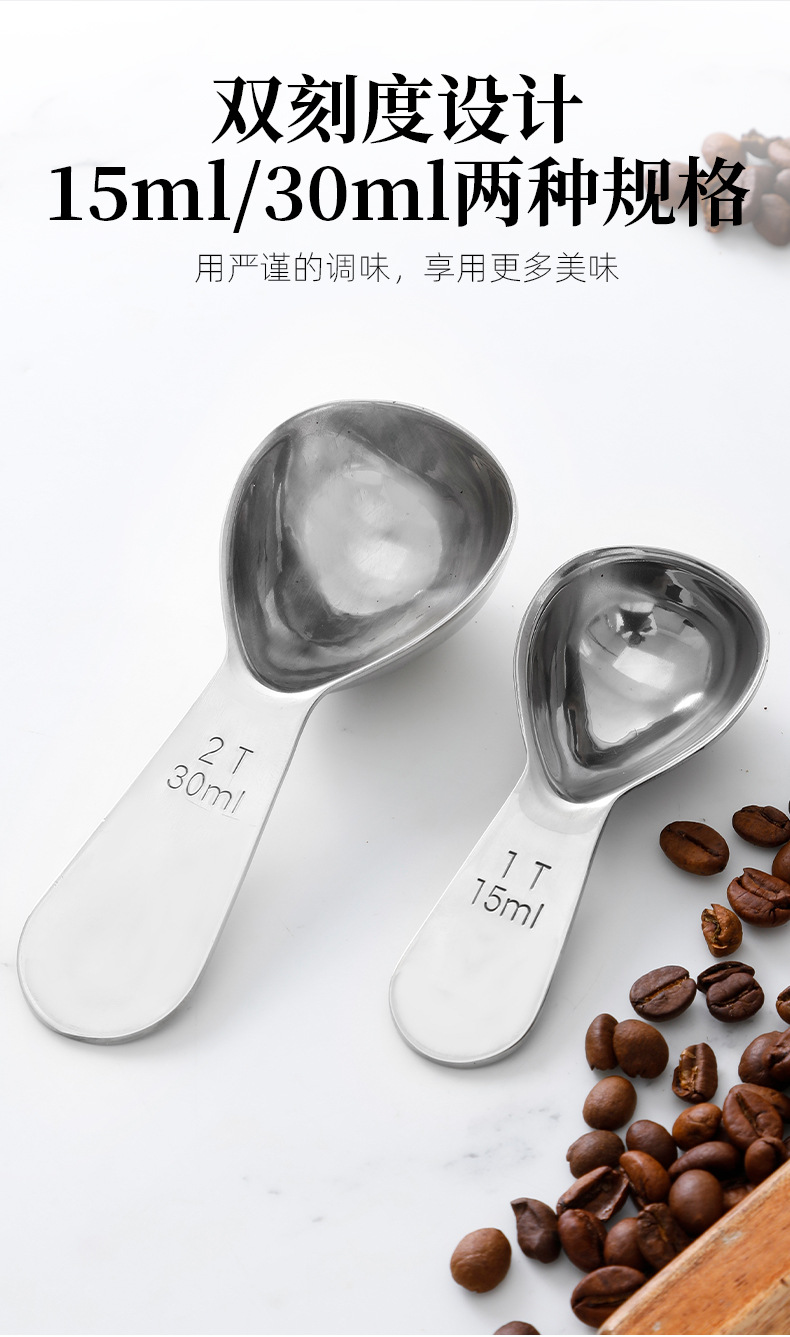 재고 304 두꺼운 스테인리스 커피 스푼 15ml 30ml 스케일 측정 숟가락 측정 숟가락 커피 분유 차 측정 숟가락스토어 가기