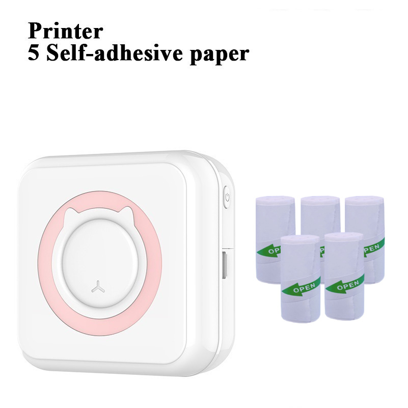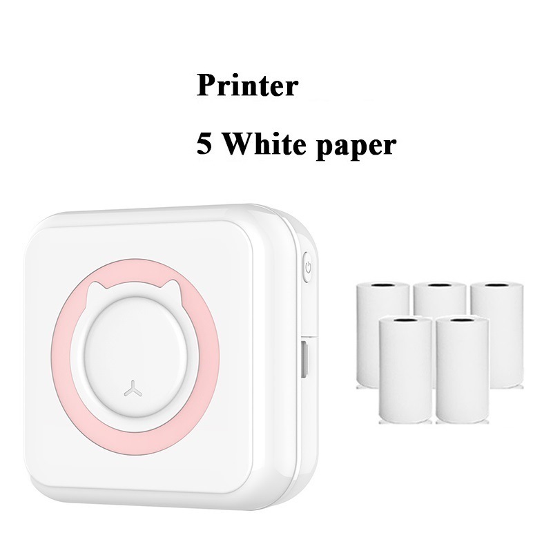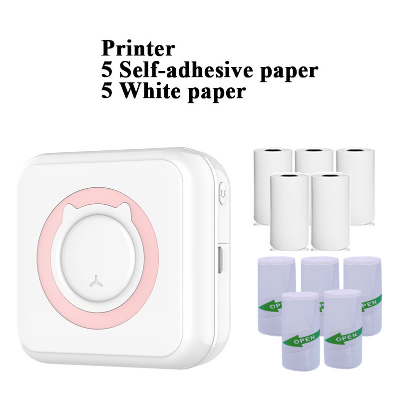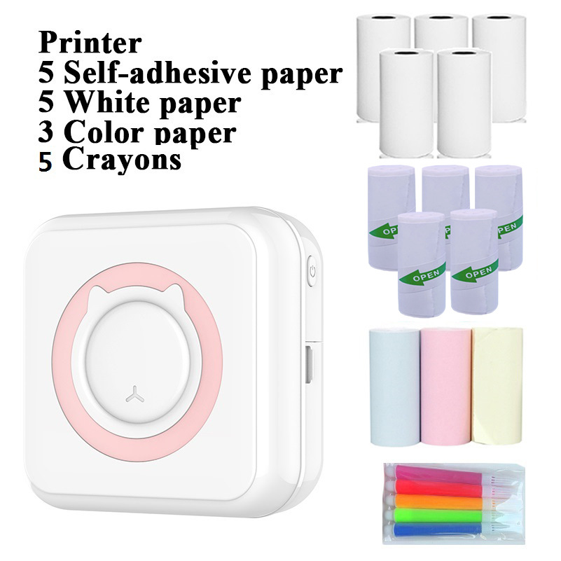 • C15 핑크 + 5 롤 열 종이 + 5 롤 접착 종이 + 3 롤 컬러 용지 + 5 색 펜