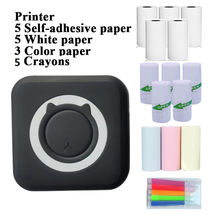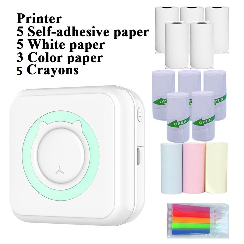 • C15 블랙 + 5 롤 열 종이 + 5 롤 접착 종이 + 3 롤 컬러 용지 + 5 색 펜