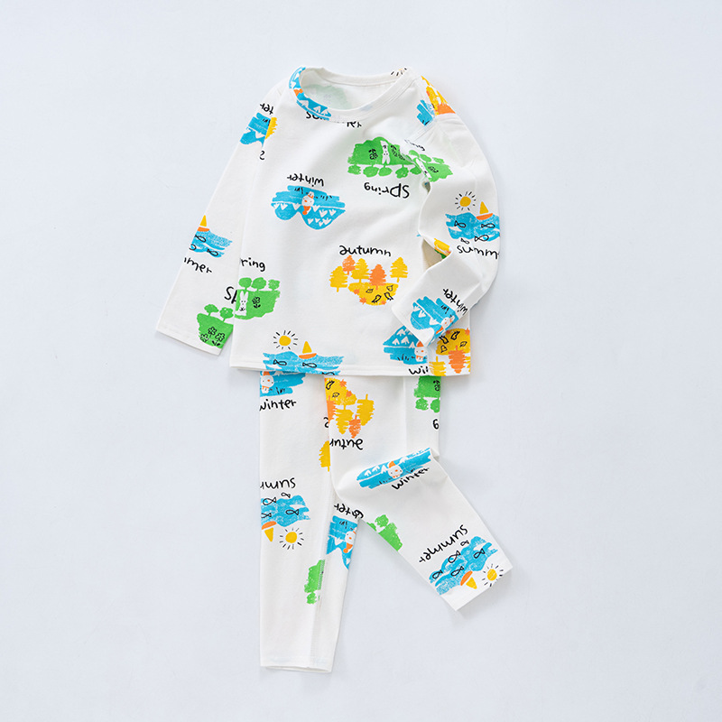 작은 돼지 데이비드 봄가을 라이카 세트 아동용 가을옷 내의 세트 유아 홈웨어 재고 정리