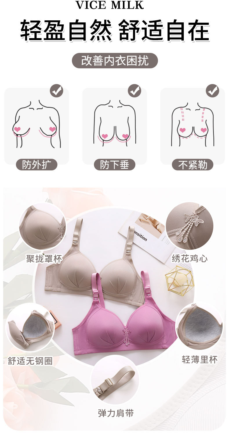 강철 링이없는 국경 플러스 사이즈 중년 어머니 속옷 큰 가슴 작은 얇은 컵 편안한 통기성 단색 간단한 브래지어