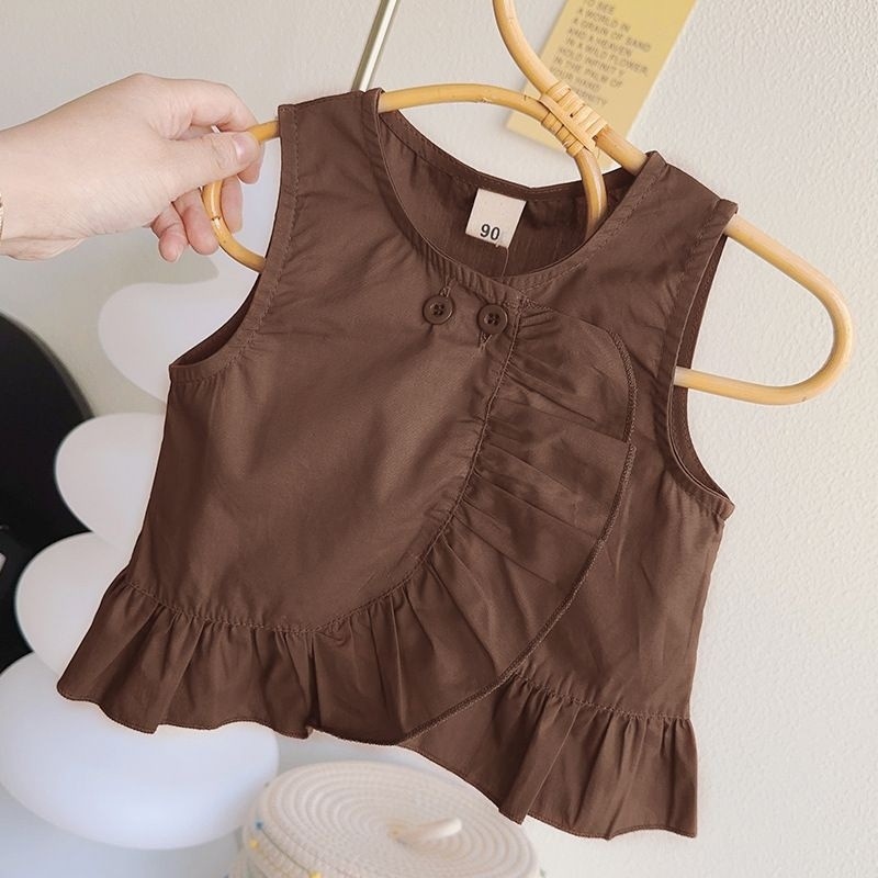 여름 새 여자 민소매 귀 인형 셔츠 폴카 도트 넓은 다리 바지 아기 캐주얼 세트