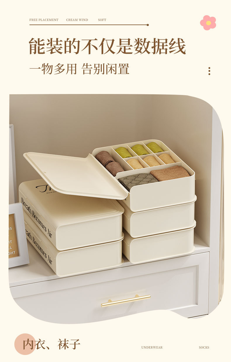 面分格收纳盒数据线收纳盒袜子内衣裤收纳饰品储