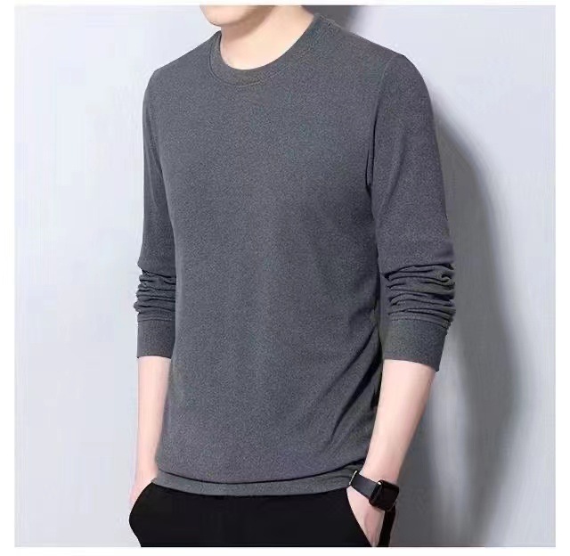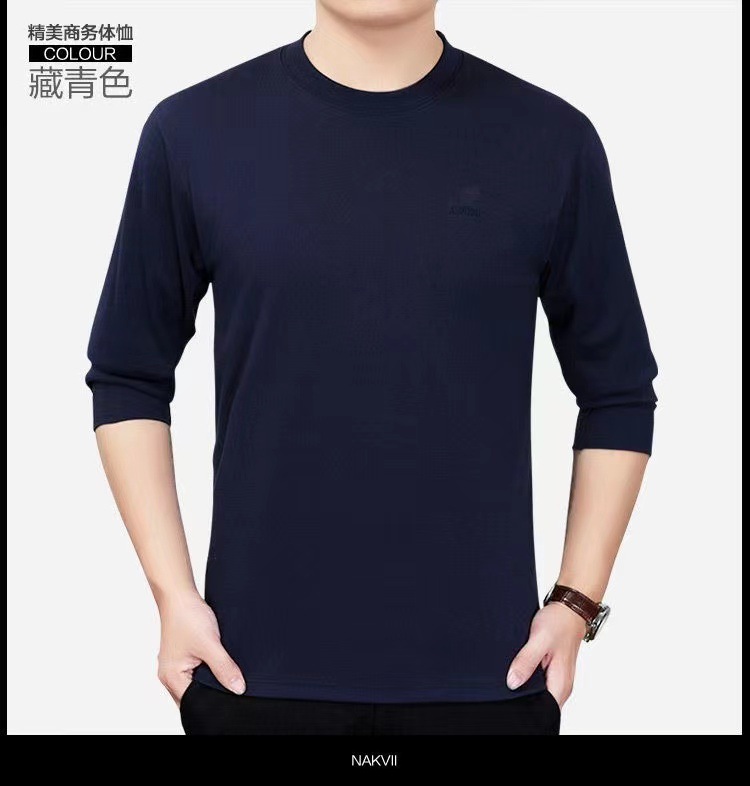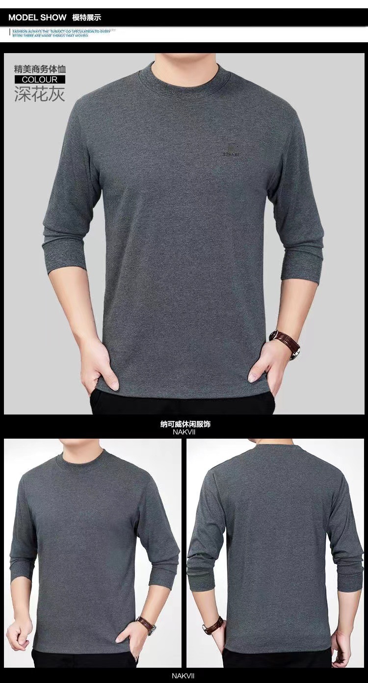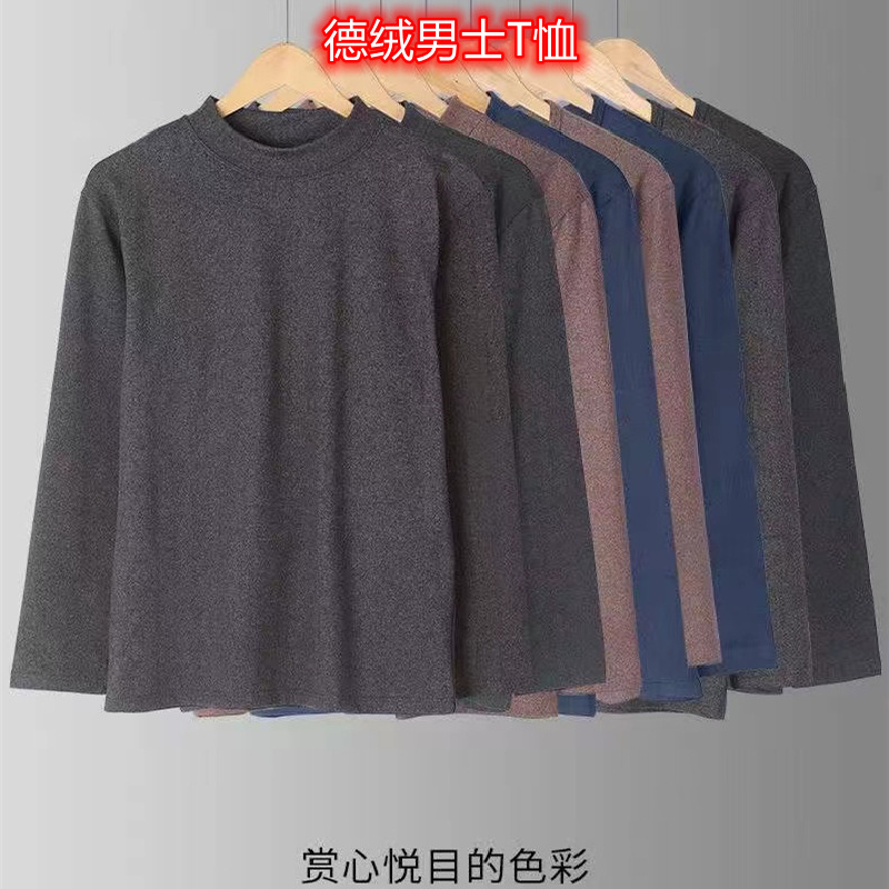 2025년 가을 신상 중노년 남성 긴팔 라운드넥 티셔츠, 독일산 벨벳 아빠 가을옷, 노점상 및 시장 활동스토어 가기