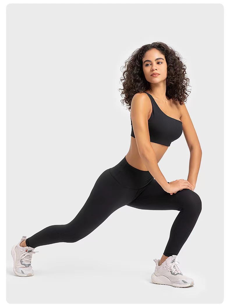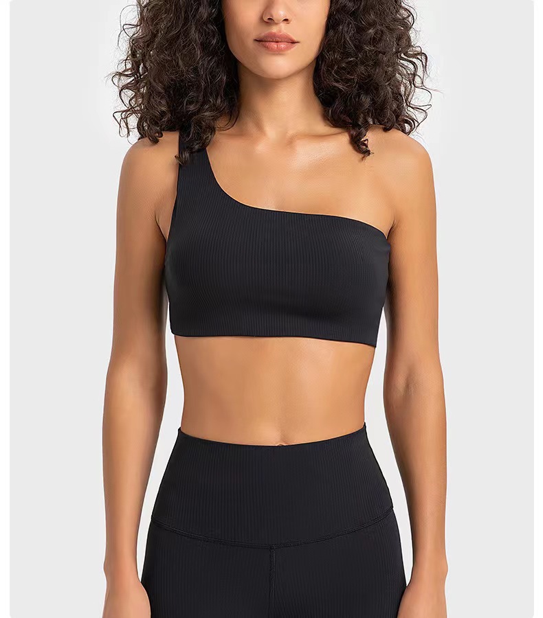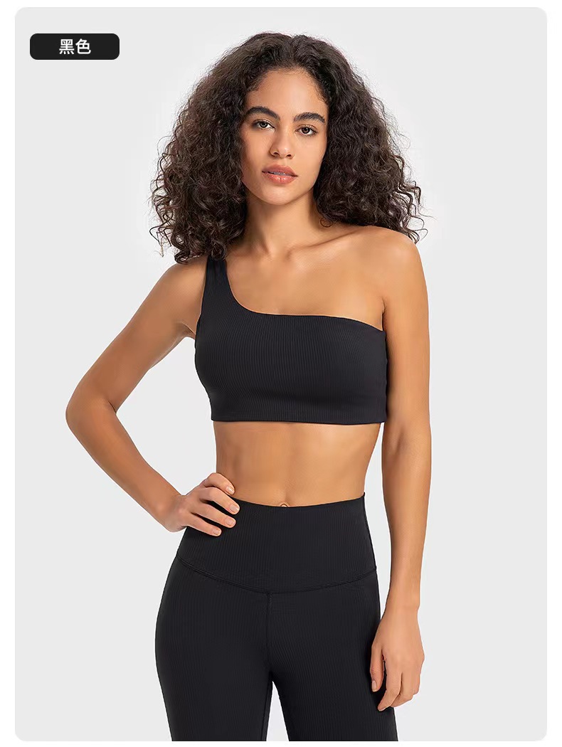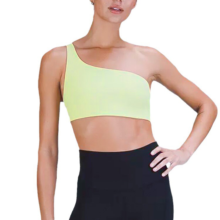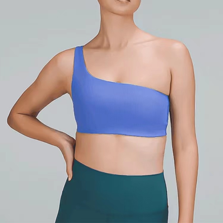 LuLu Align * 여성용 비스듬한 어깨 스포츠 속옷 벗겨진 할로우 백 요가 브래지어