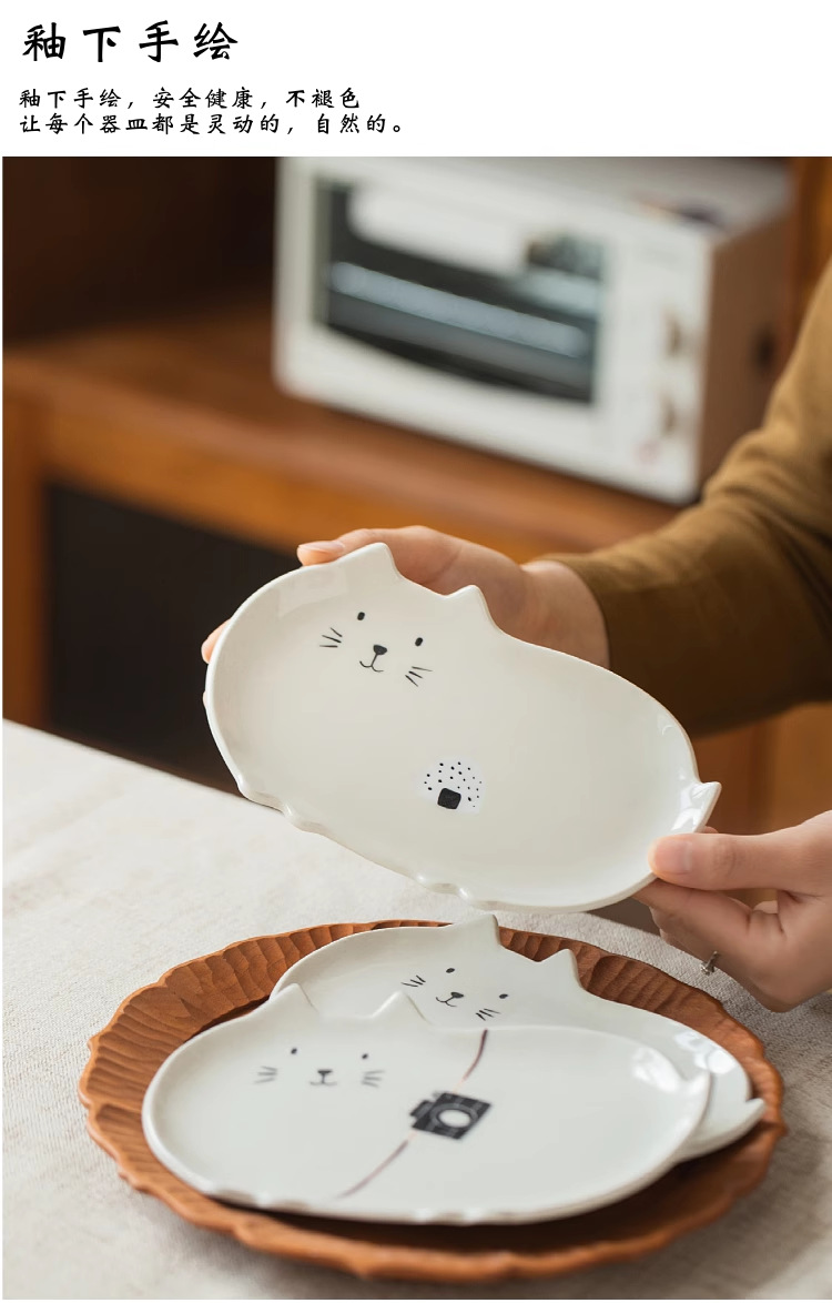 일본식 손으로 그린 언더 유약 디저트 플레이트 호텔 레스토랑 페이스트리 플레이트 오후 티 플레이트 가정용 케이크 플레이트 과일 플레이트