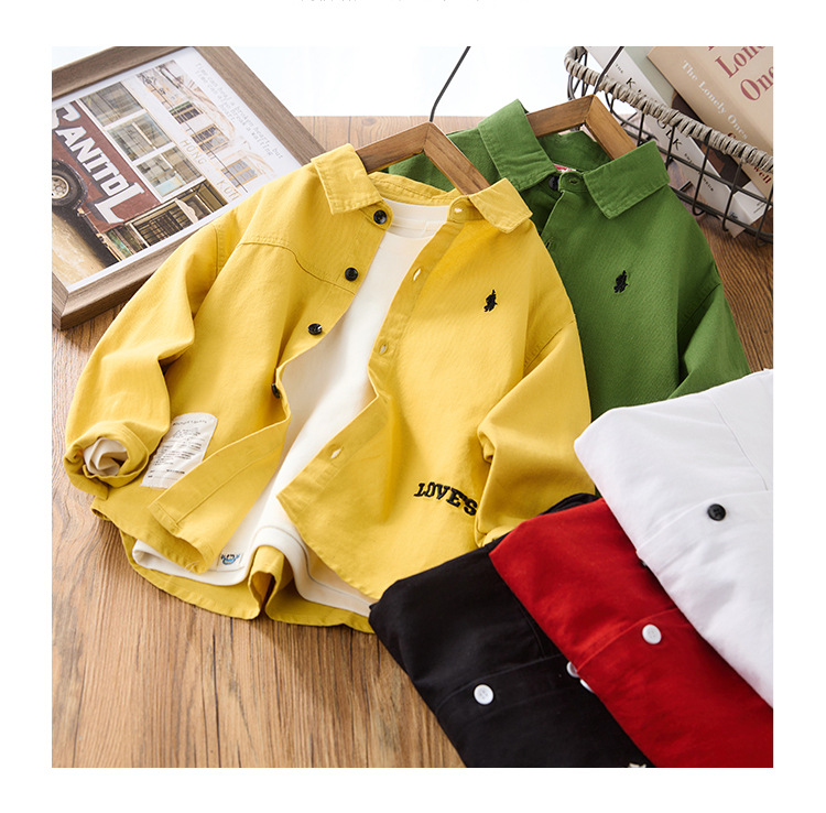 어린이 의류 소년 봄과 가을 긴팔 셔츠는 새로운 중형 및 대형 어린이 서양식 셔츠 어린이 패션 캐주얼 탑을 2024스토어 가기